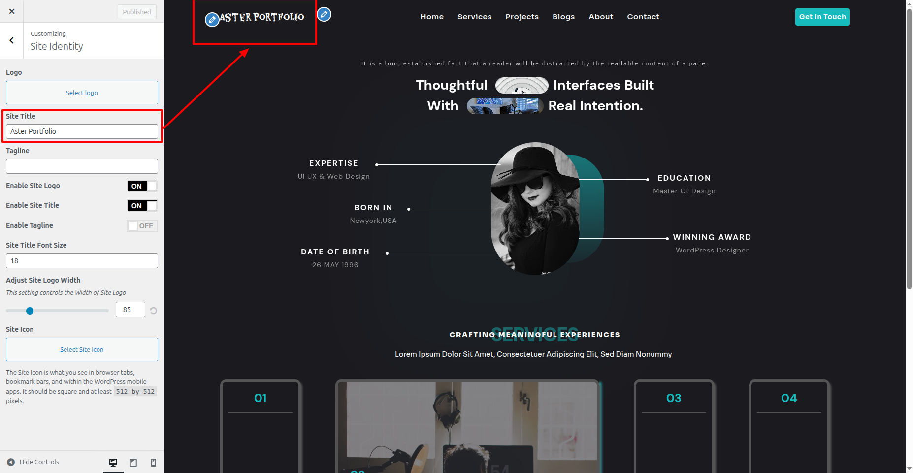 - Hit up the the Dashboard > Appearance > Customize > > Site Identity.