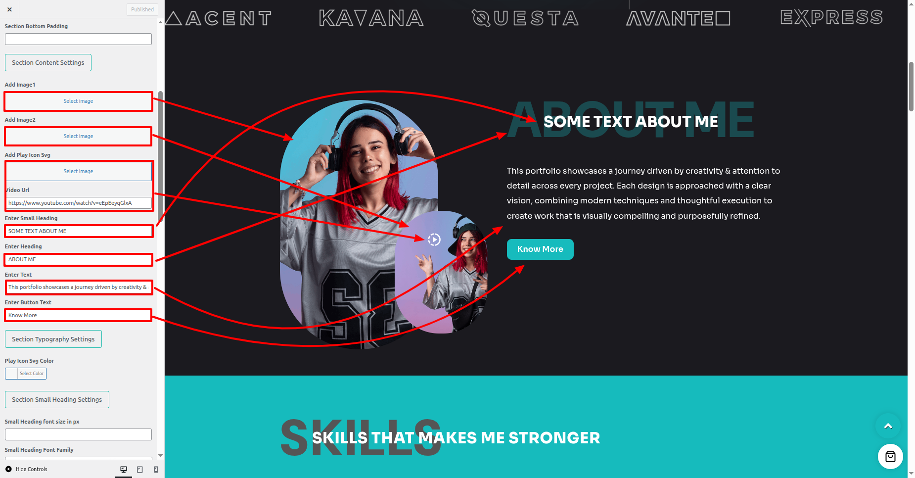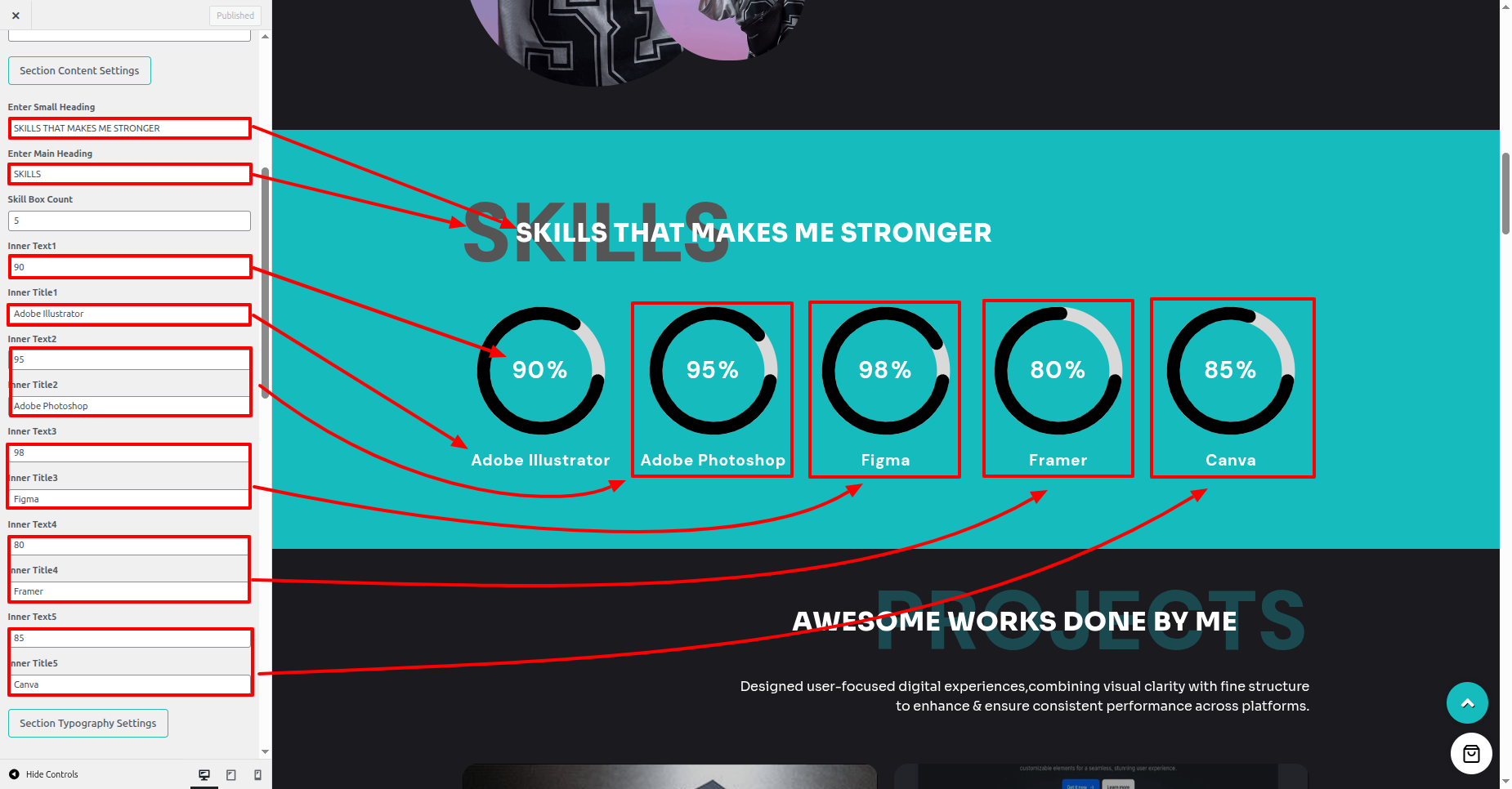 - Proceed to the Dashboard > Appearance > Customize > Theme Settings > Skills Section.