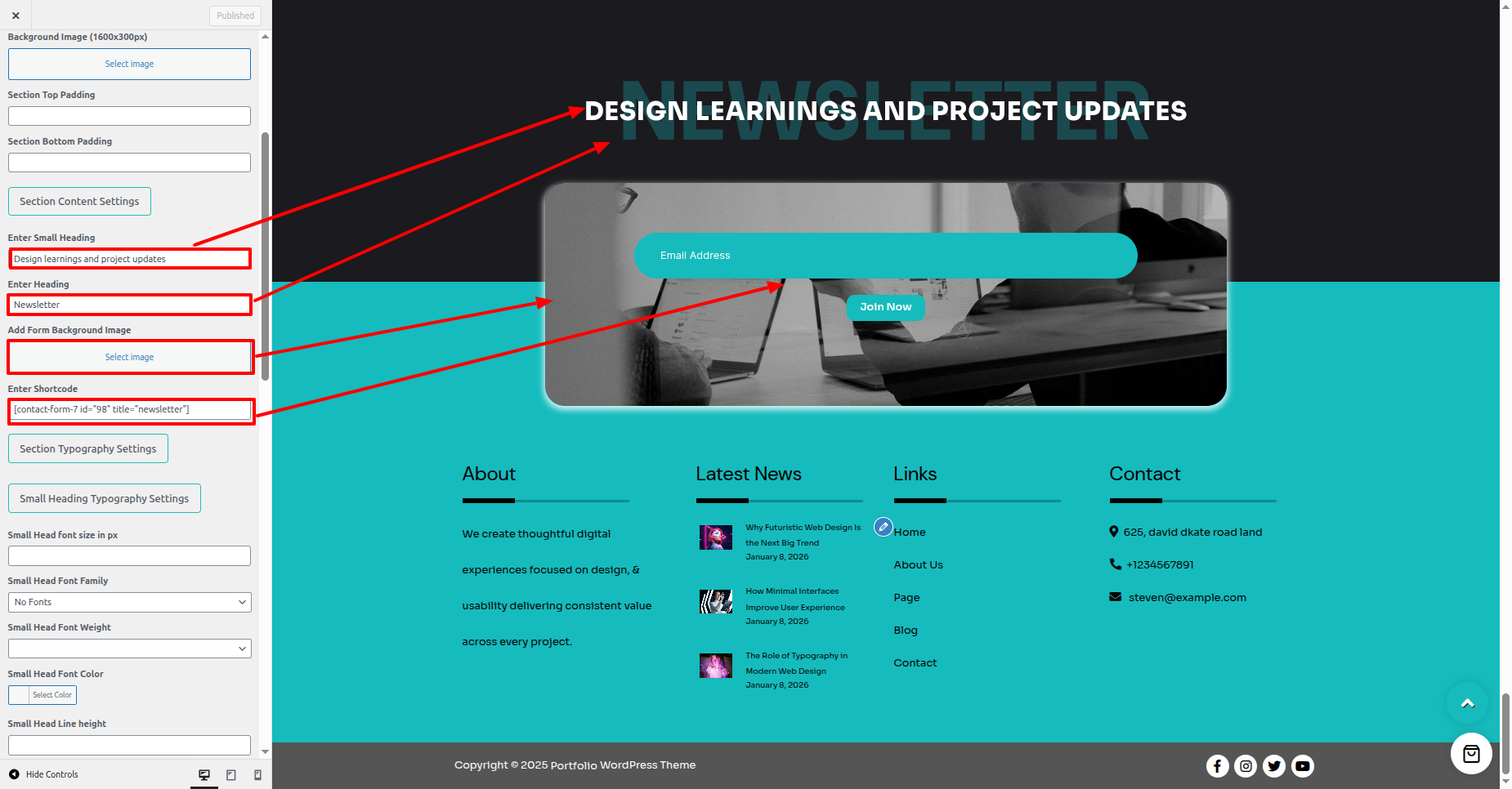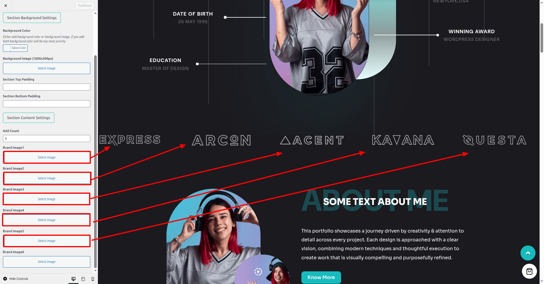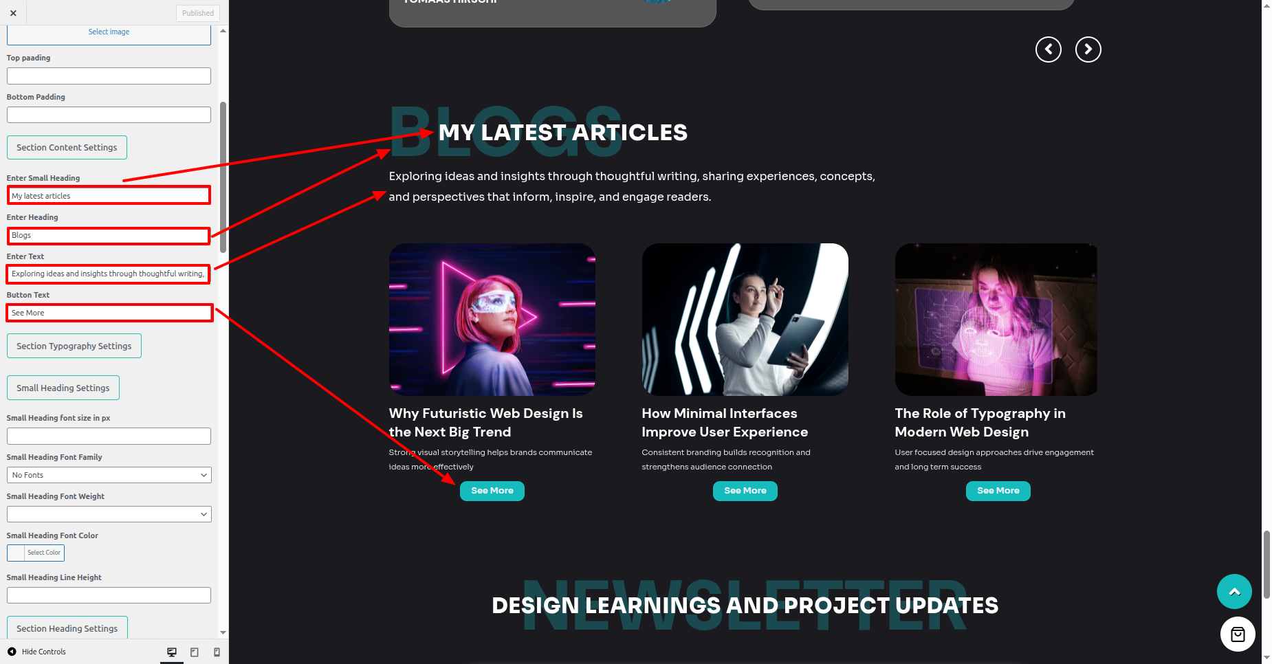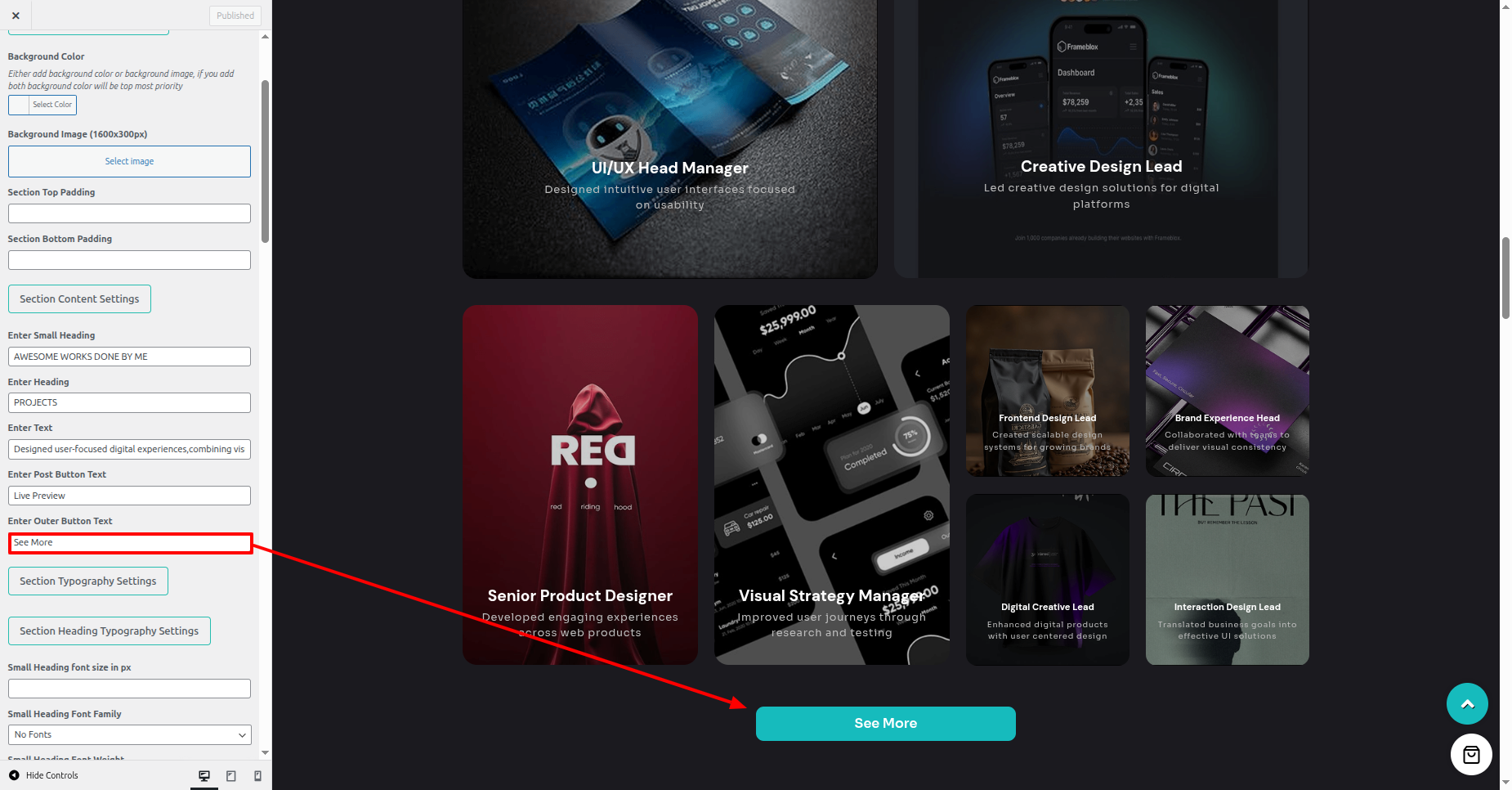 - In Customizer, you see the options to style this Section.