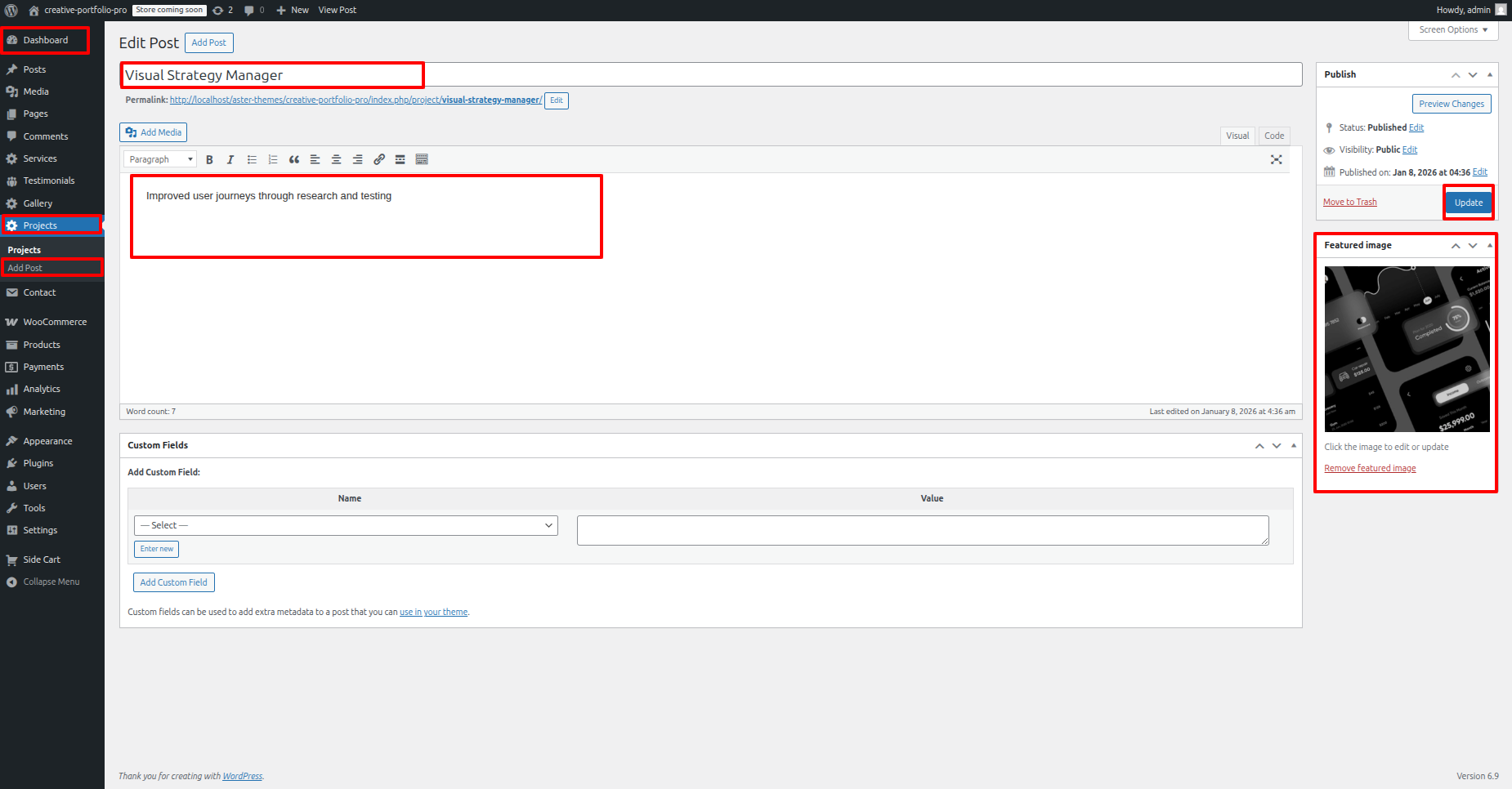 - Proceed to the Dashboard, then go to Project and click Add new Post Fill in your details and click Publish button.