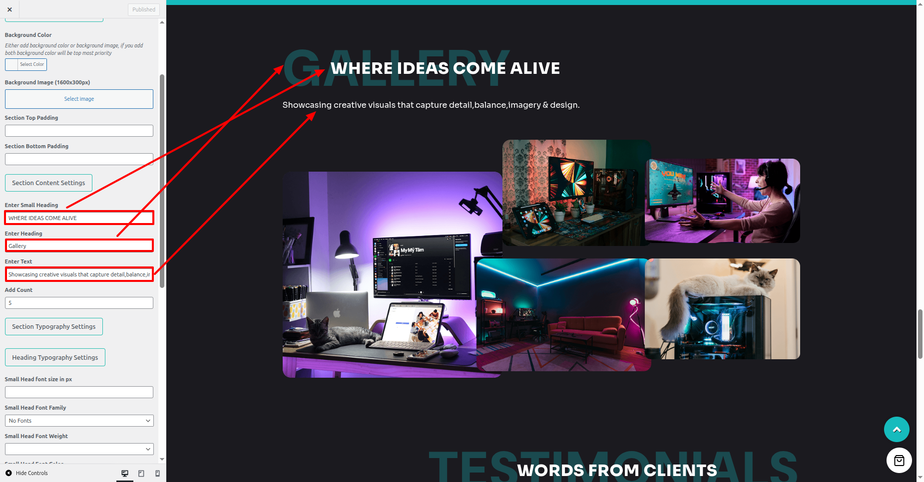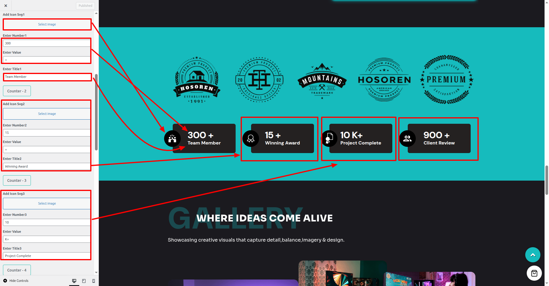 - Proceed to the the Dashboard > Appearance > Customize > Theme Settings > Our Gallery Section.