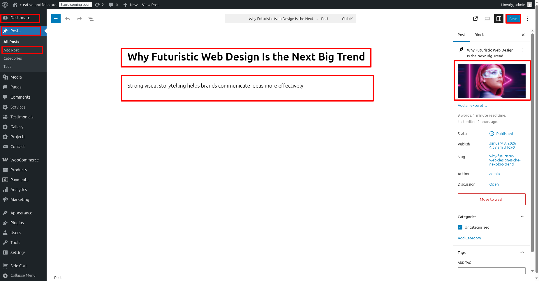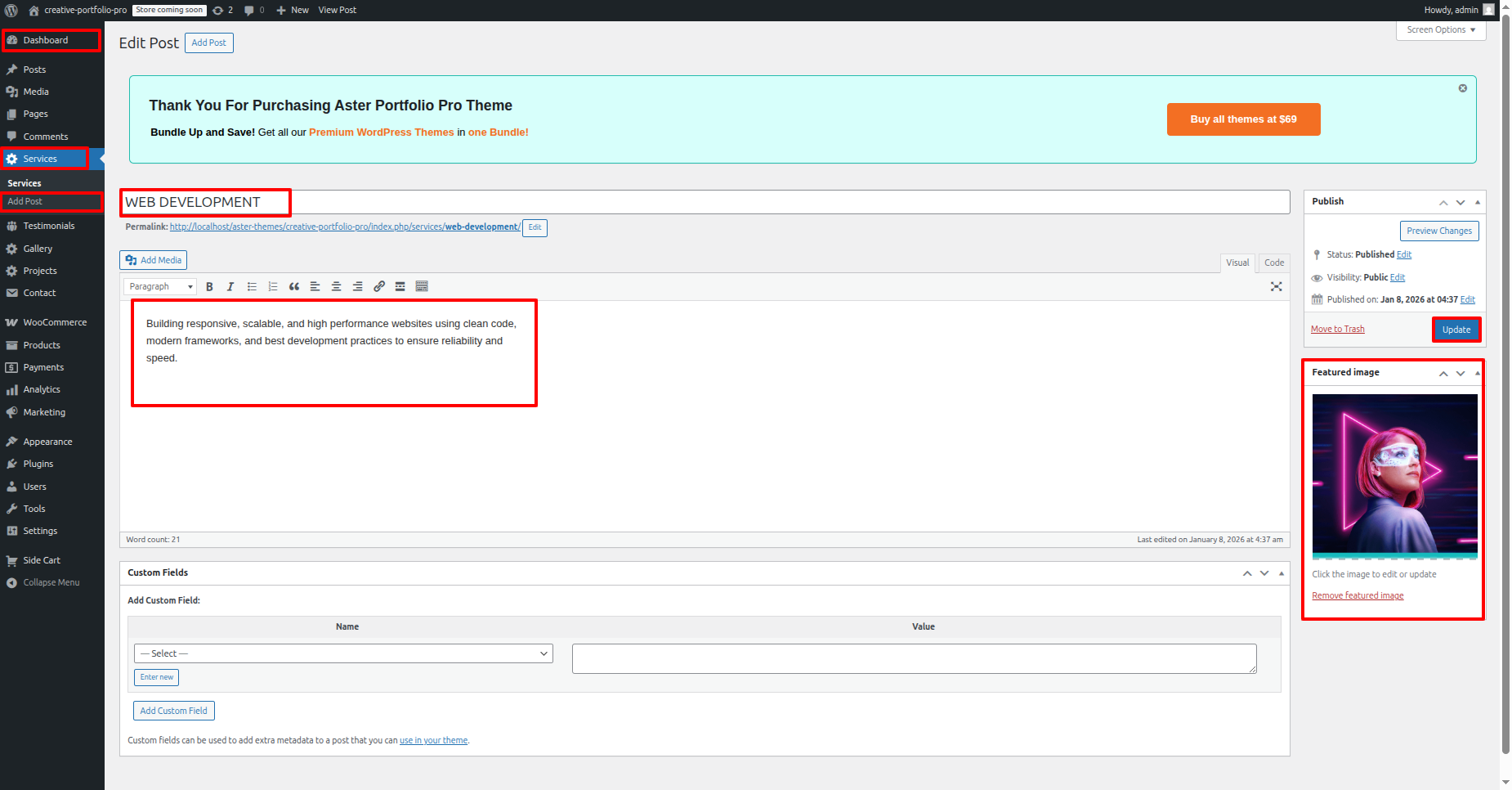 - Proceed to the Dashboard, then go to Services and click Add new post Fill in your details and click Publish button.