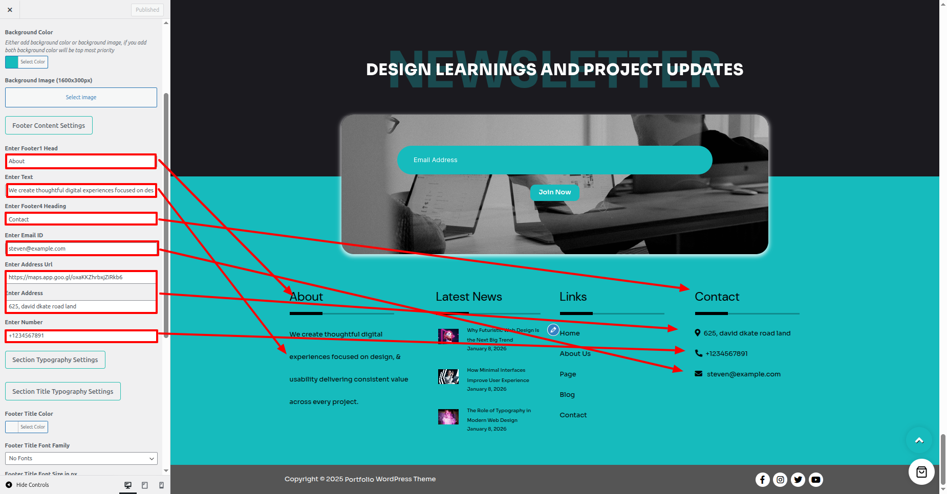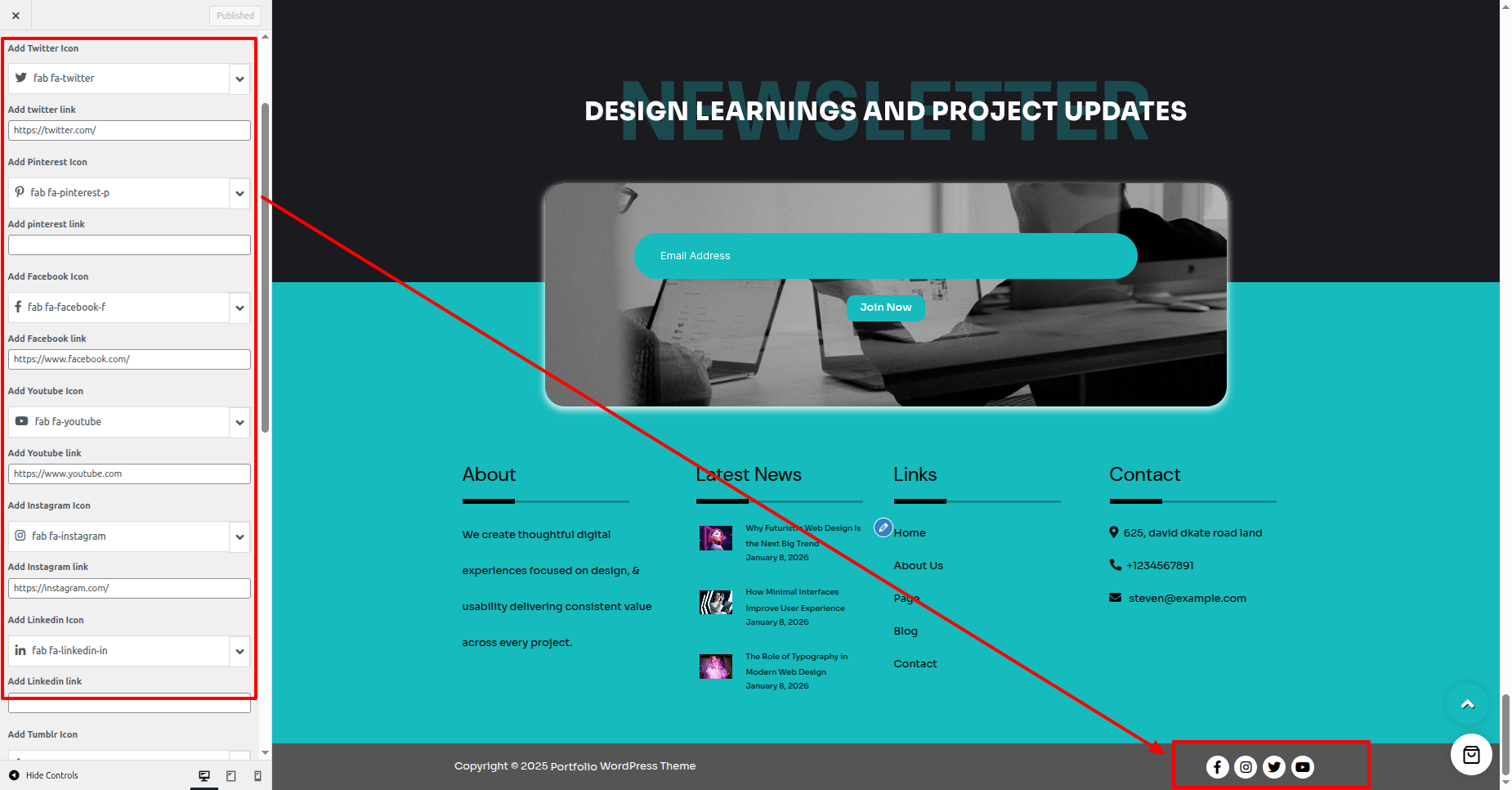 - For Social Icons, Go to Dashboard > Appearance > Customize > Theme Settings > Social Icons.