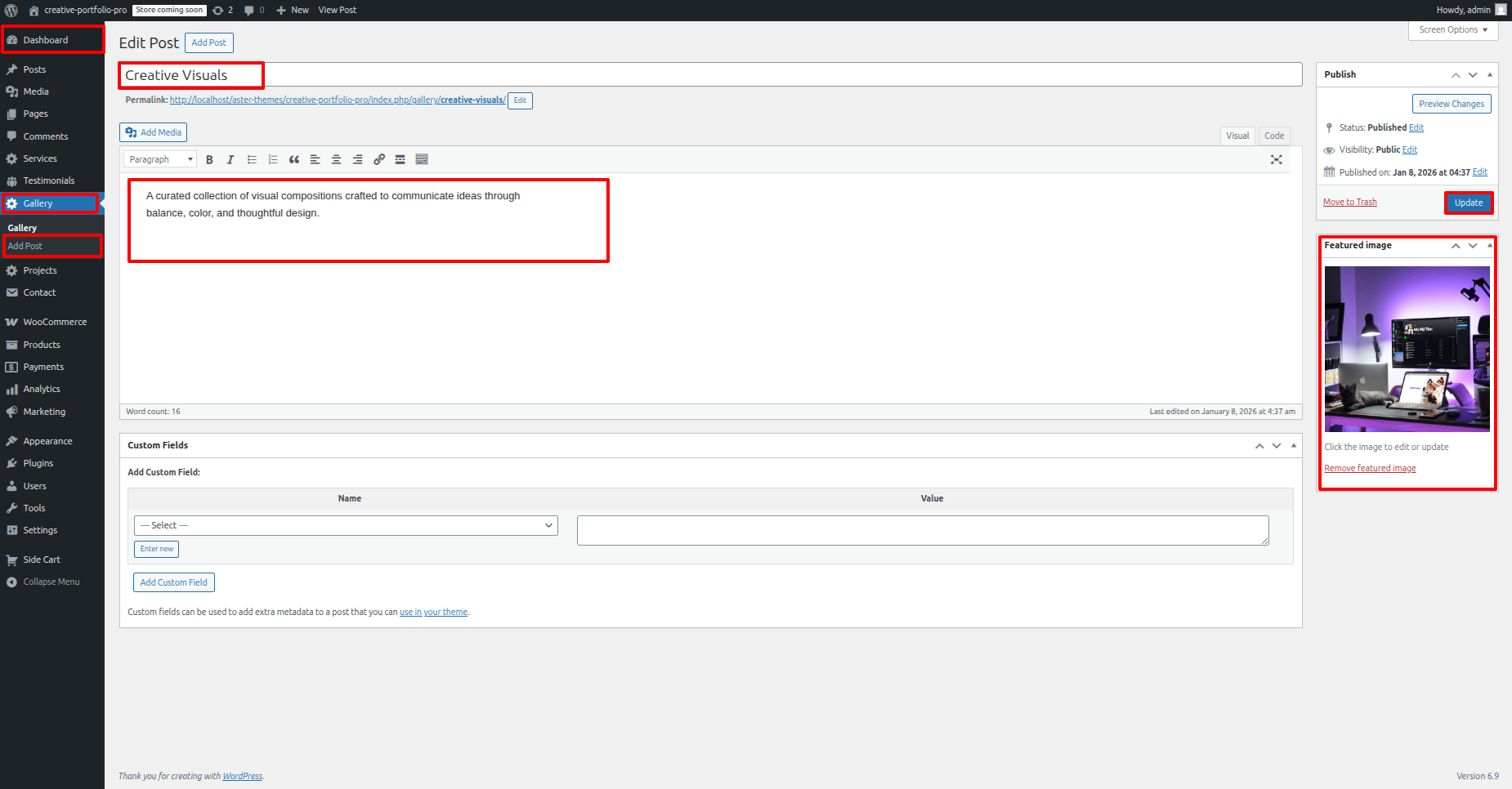 - Proceed to the Dashboard, then go to Our Gallery and click Add new post Fill in your details and click Publish button.