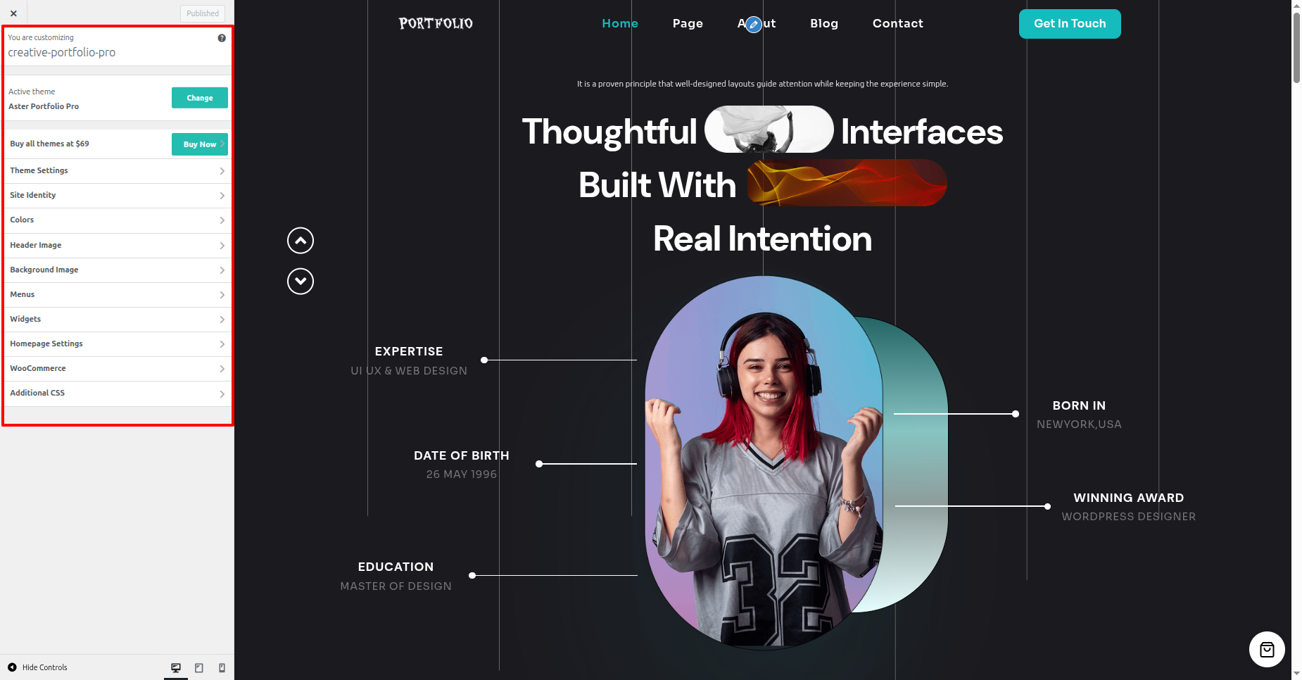 - In the "Experience" section, here you can review some statistics about our Aster Portfolio Pro.