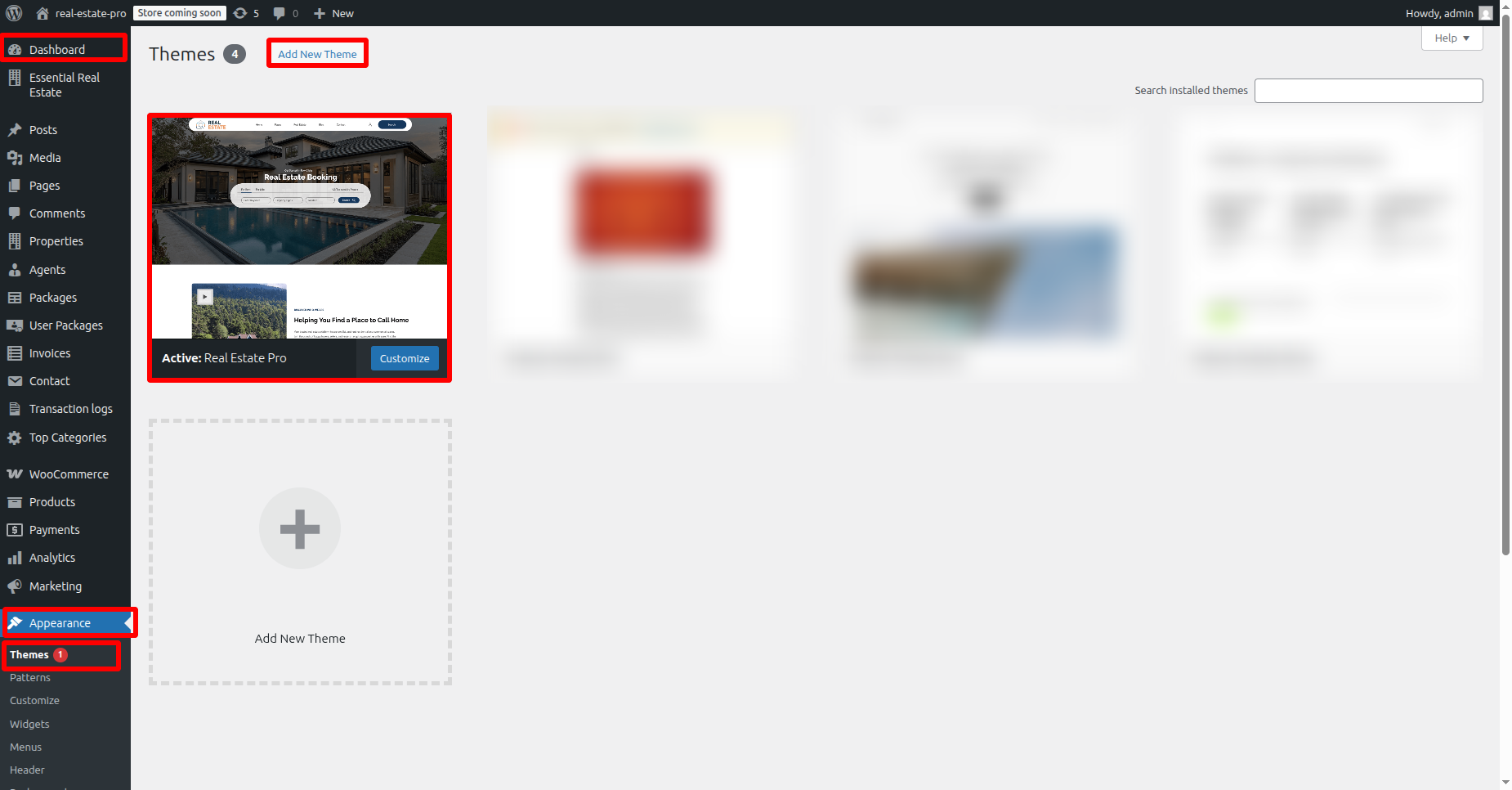 - Proceed to the Dashboard > Appearance > Themes and activate the theme from the Dashboard.