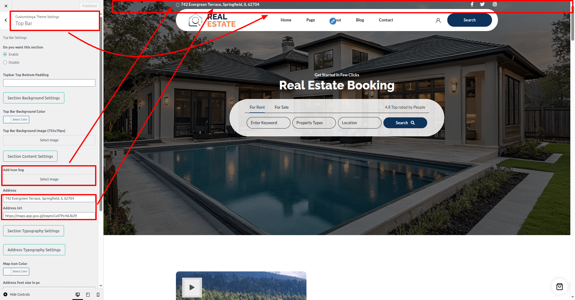 - Proceed to the the Dashboard > Appearance > Customize > Theme Settings > Top Bar.