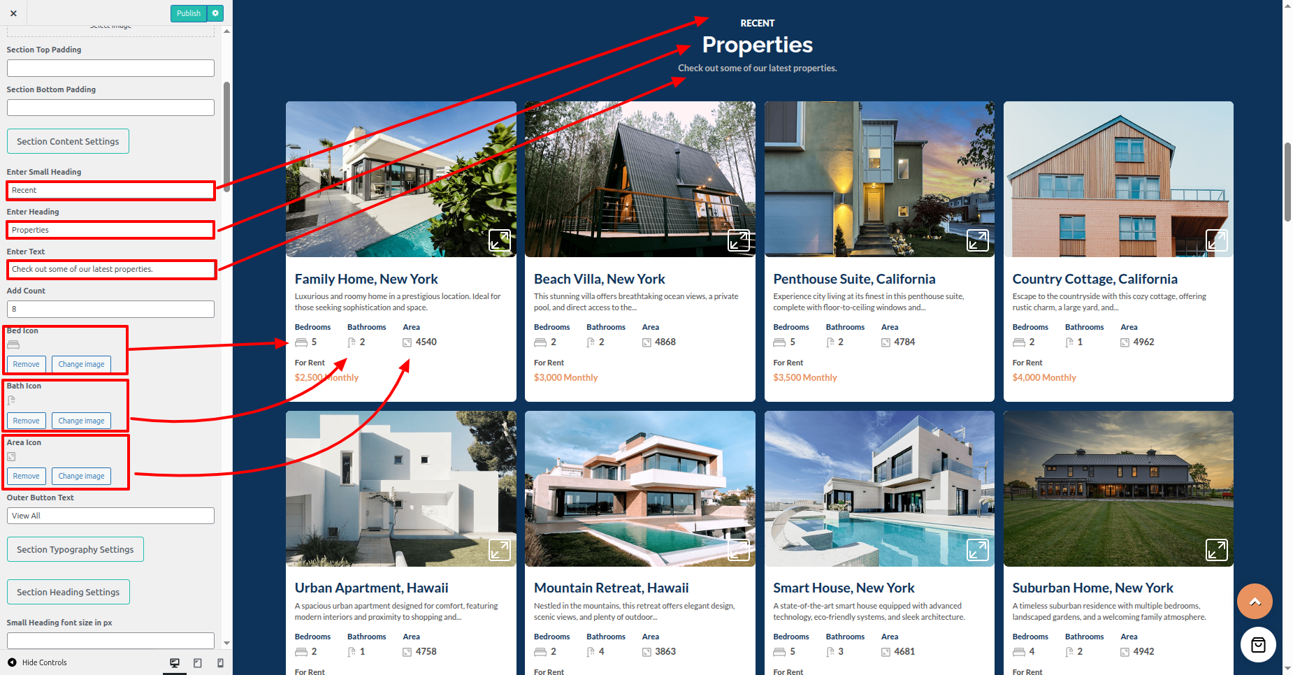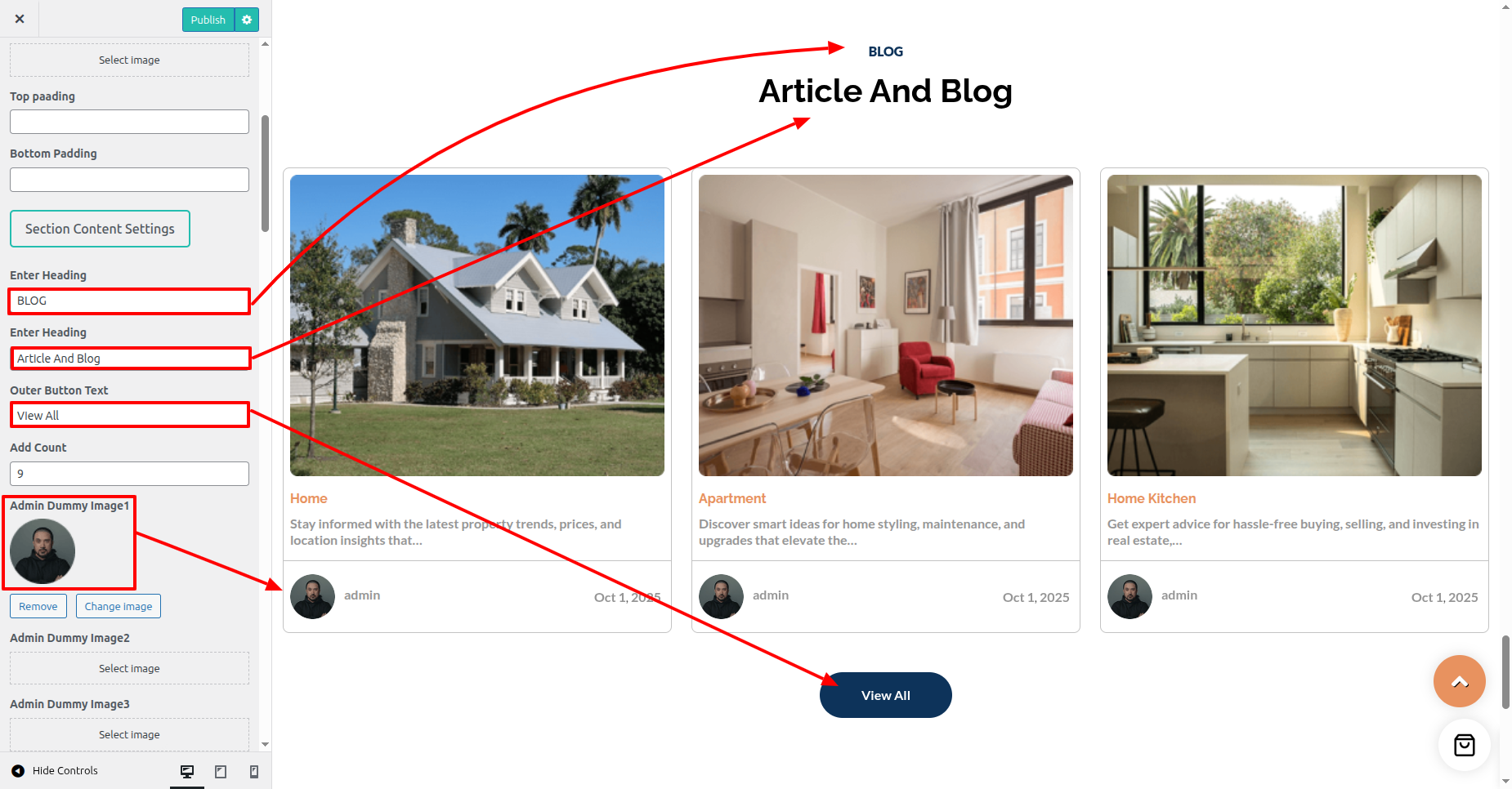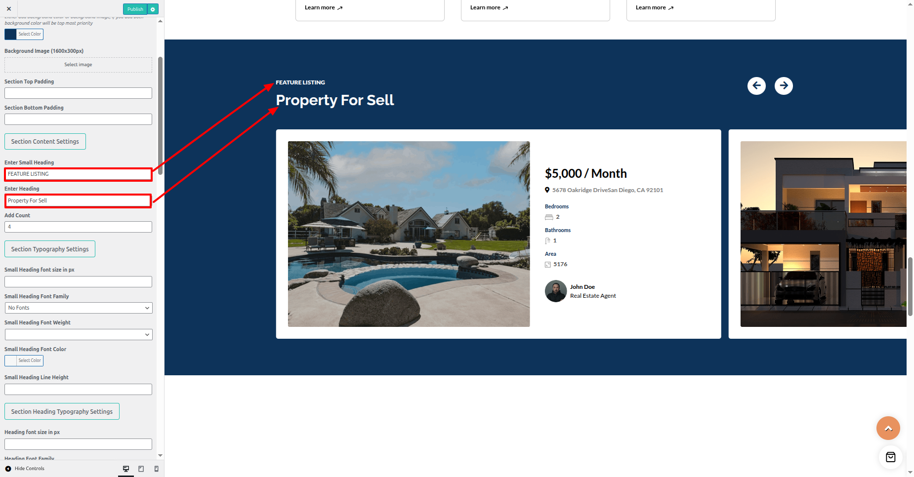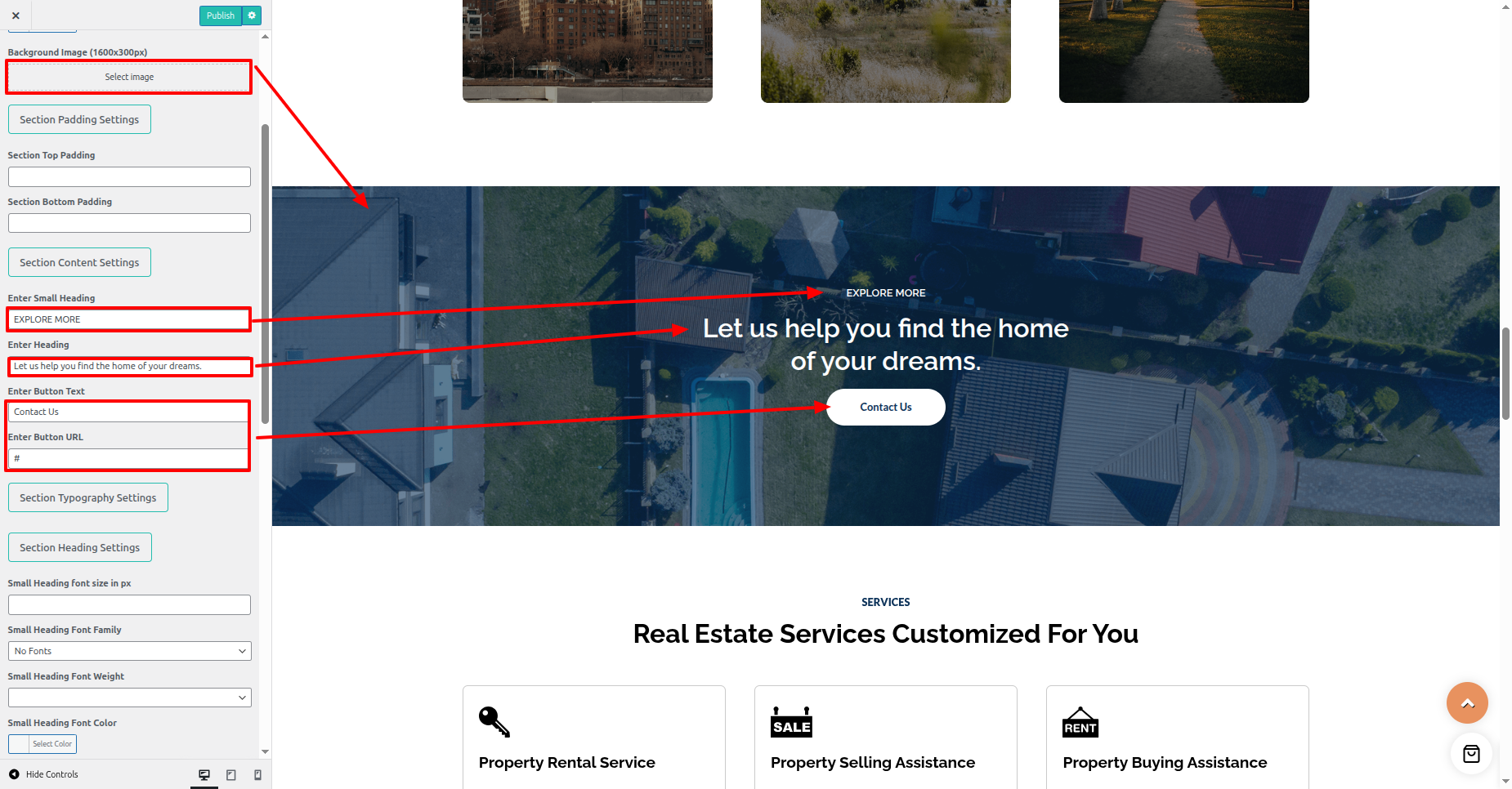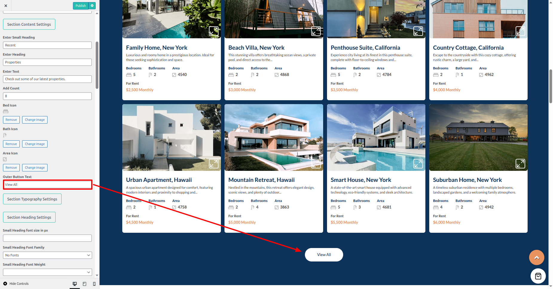- Proceed to the the Dashboard > Appearance > Customize > Theme Settings > Property For Sell Section.