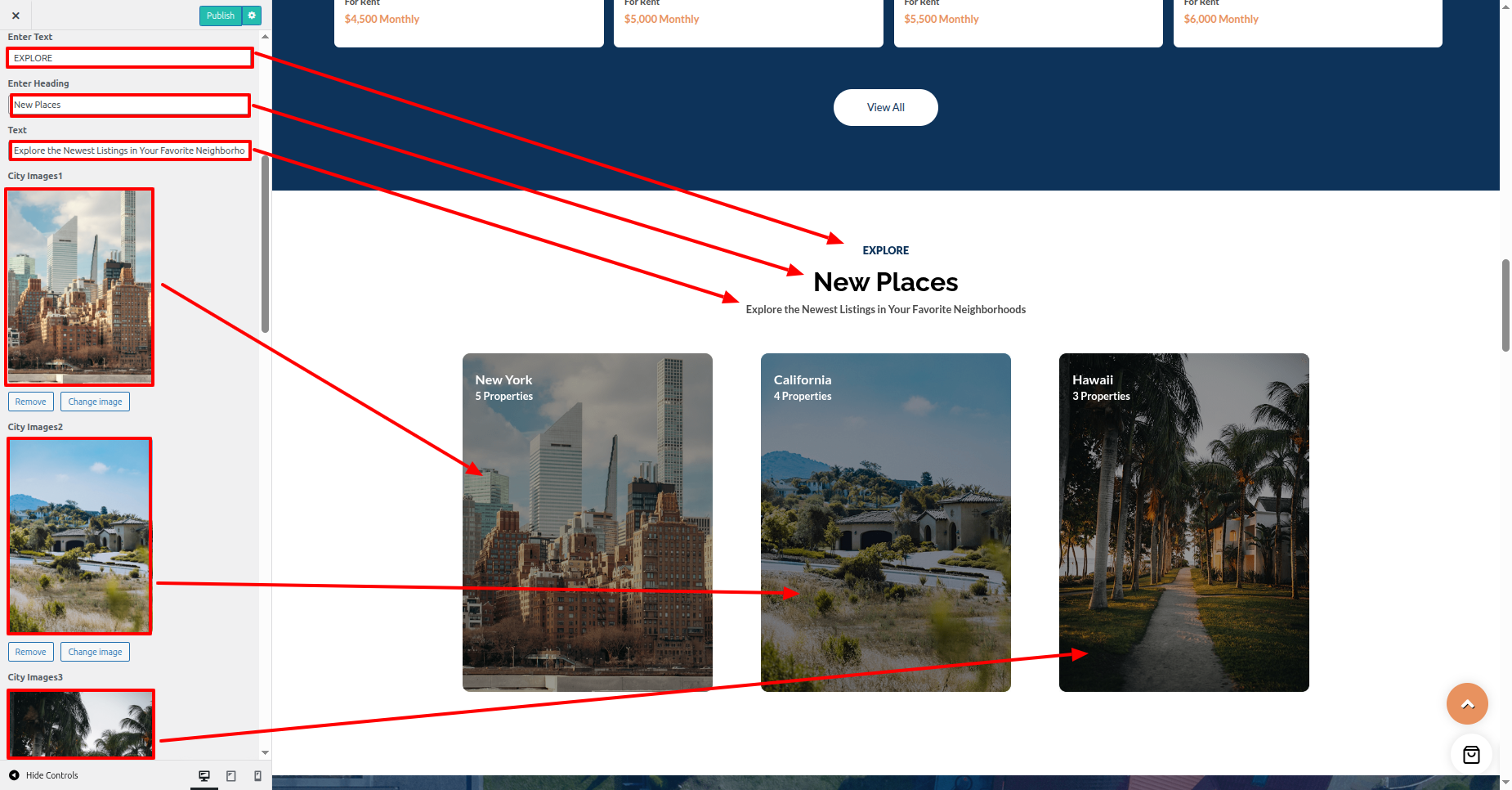 - Proceed to the Dashboard > Appearance > Customize > Theme Settings > New Places Section.