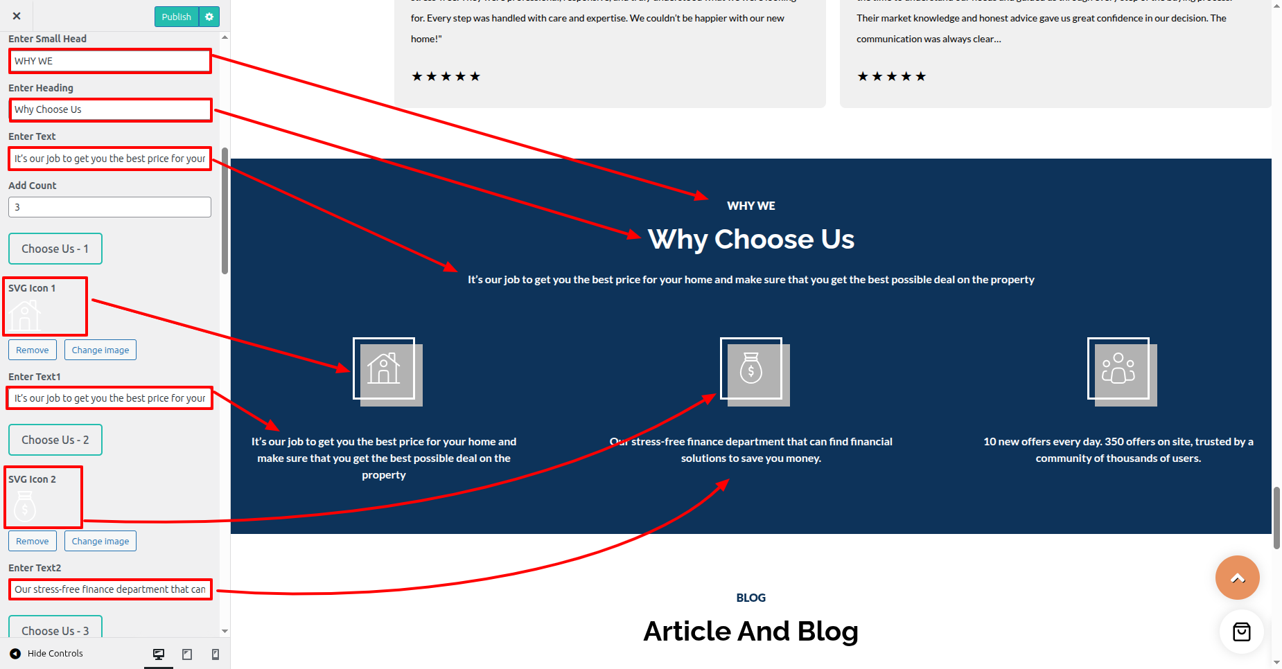 - Proceed to the the Dashboard > Appearance > Customize > Theme Settings > Services Section.
