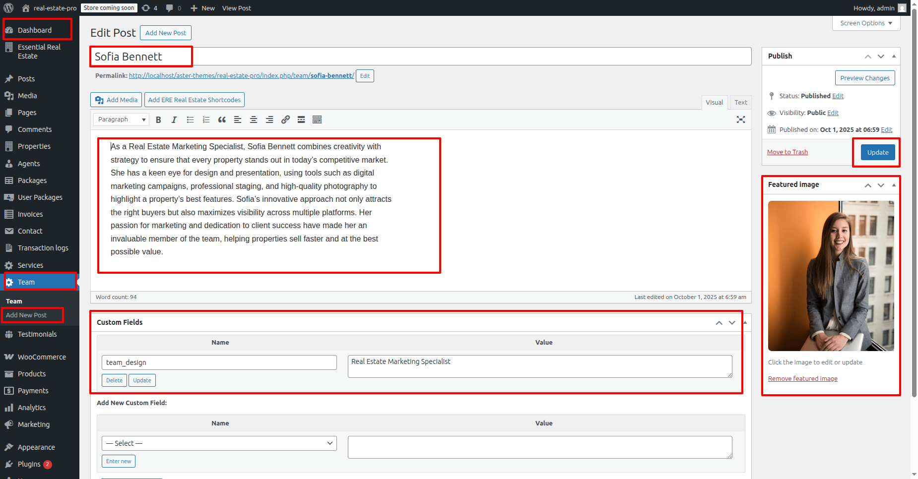- Proceed to the Dashboard, then go to Team and click Add new post Fill in your details and click Publishbutton.