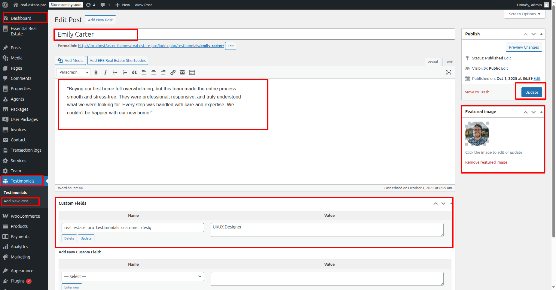 - Proceed to the Dashboard, then go to Testimonial and click Add new post Fill in your details and click Publishbutton.