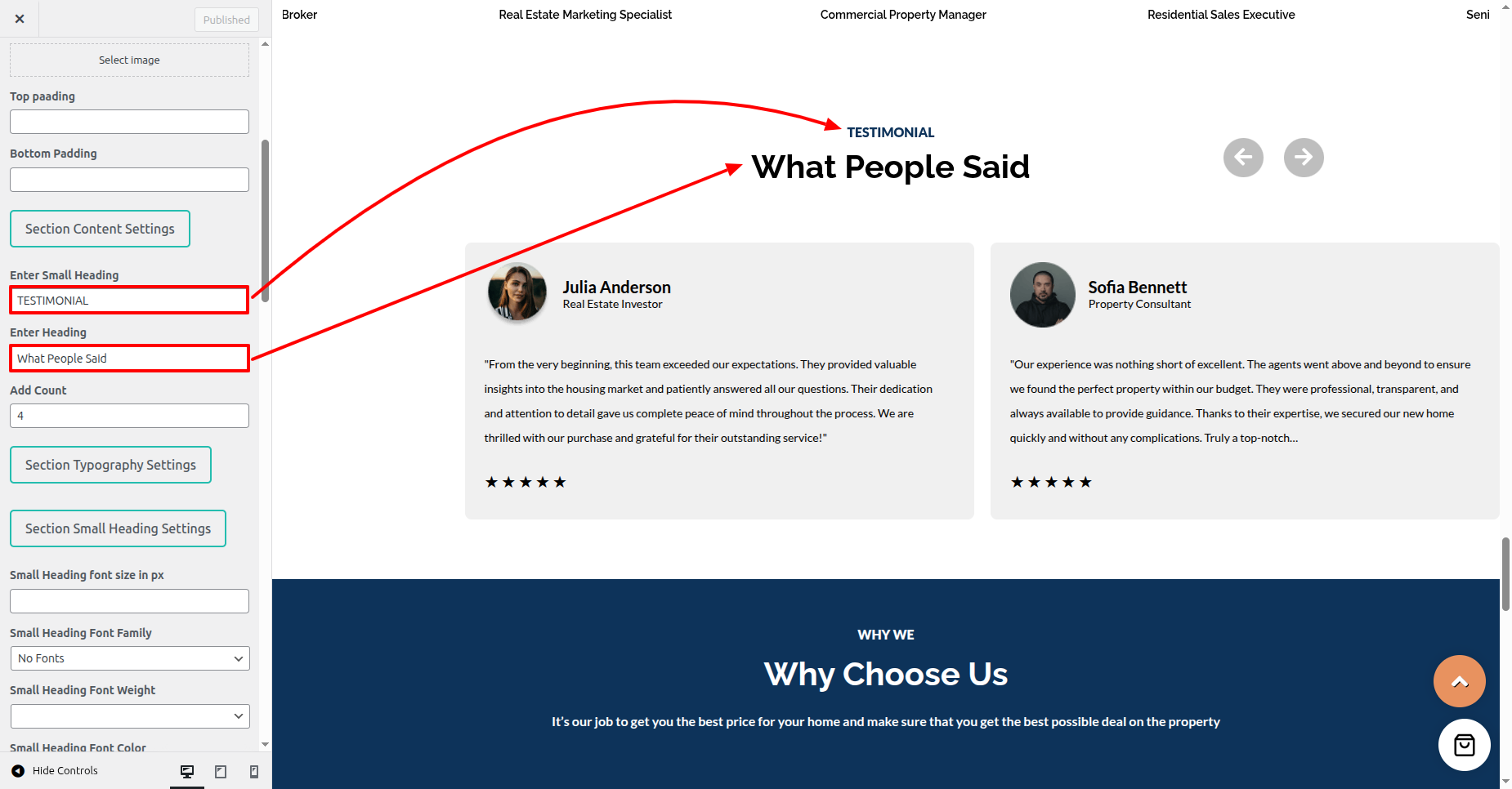 - Proceed to the the Dashboard > Appearance > Customize > Theme Settings > Testimonial Section.