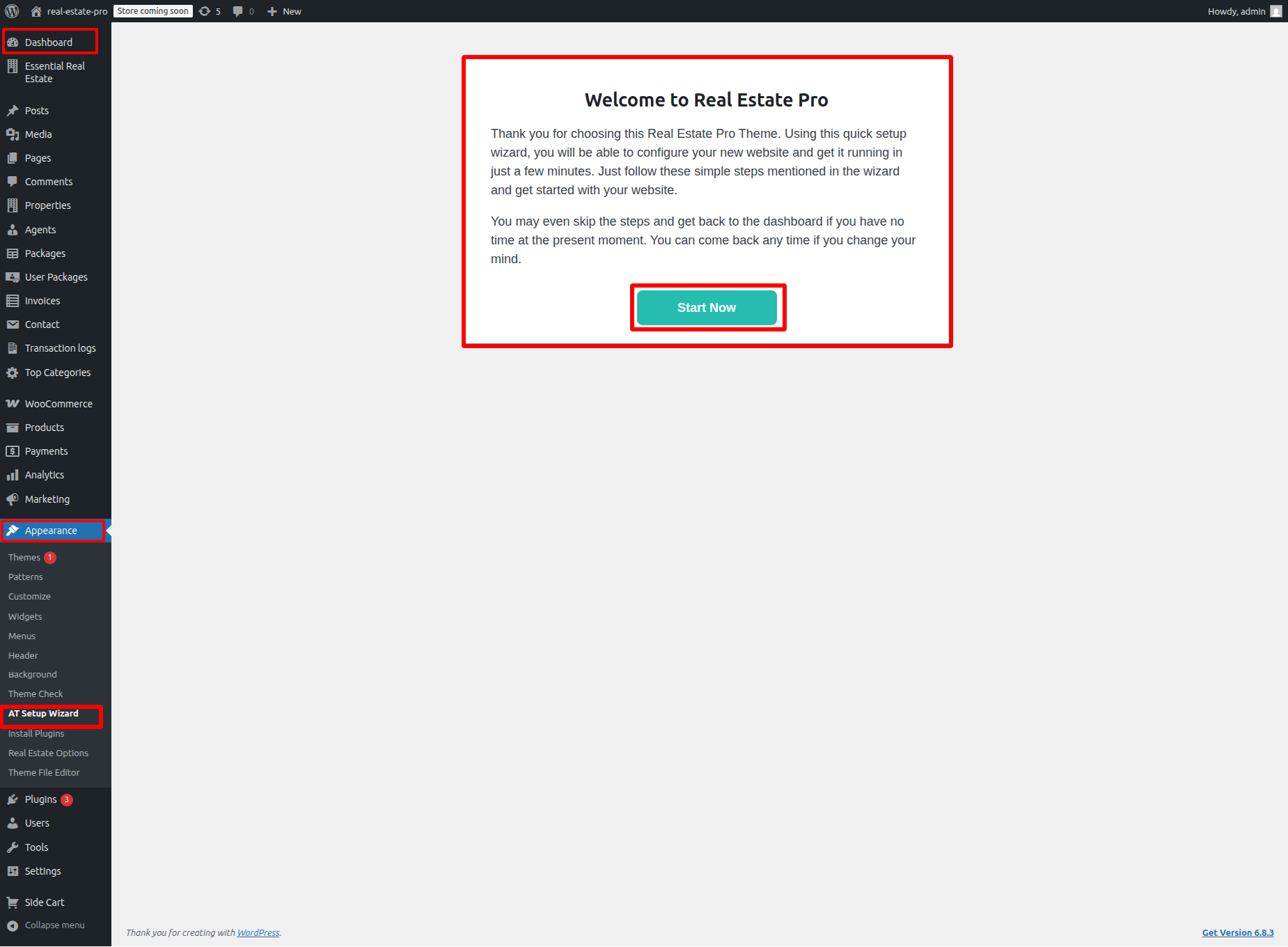 - Proceed to the Dashboard > Appearance in the left-hand menu, and then Click on At Setup Wizard.
