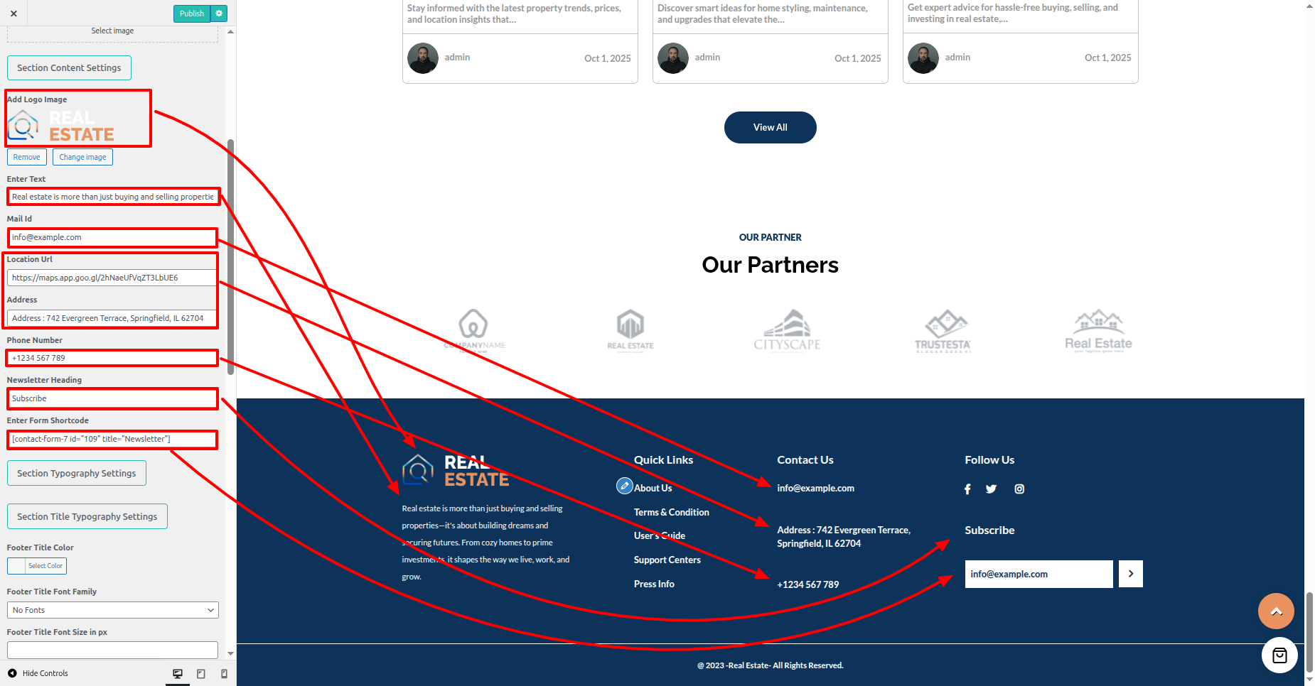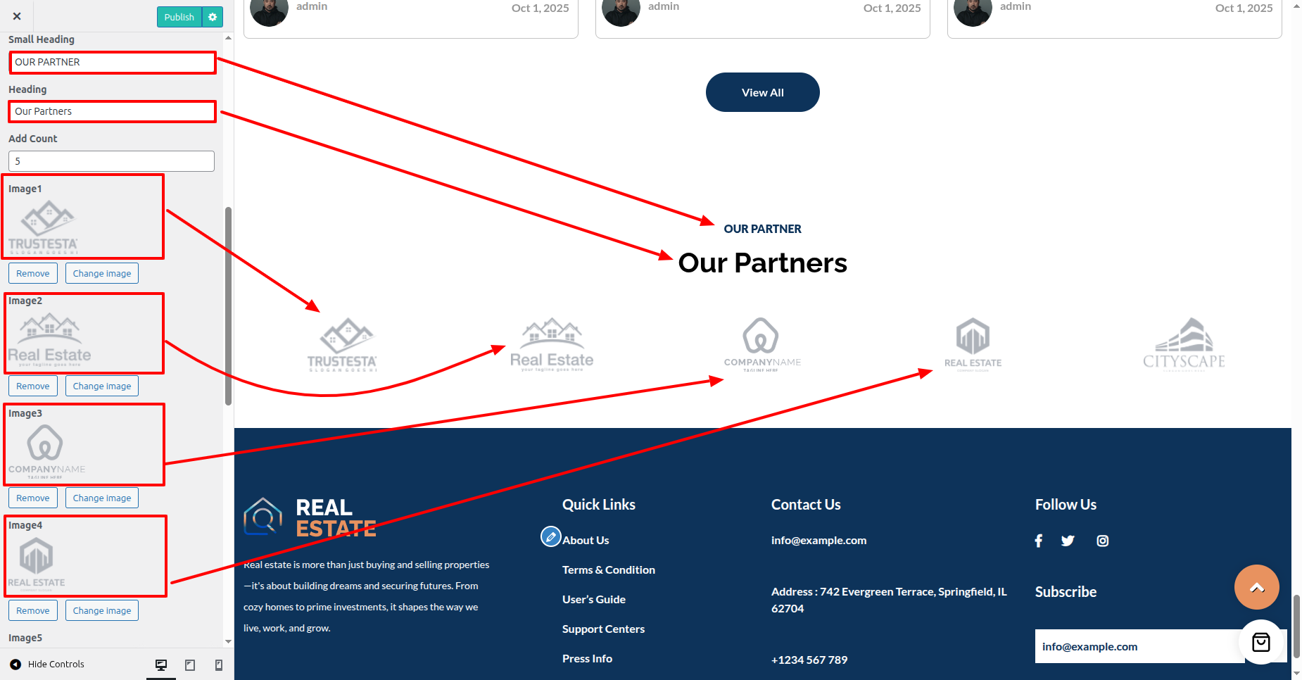 - Proceed to the the Dashboard > Appearance > Customize > Theme Settings > Partner Section.