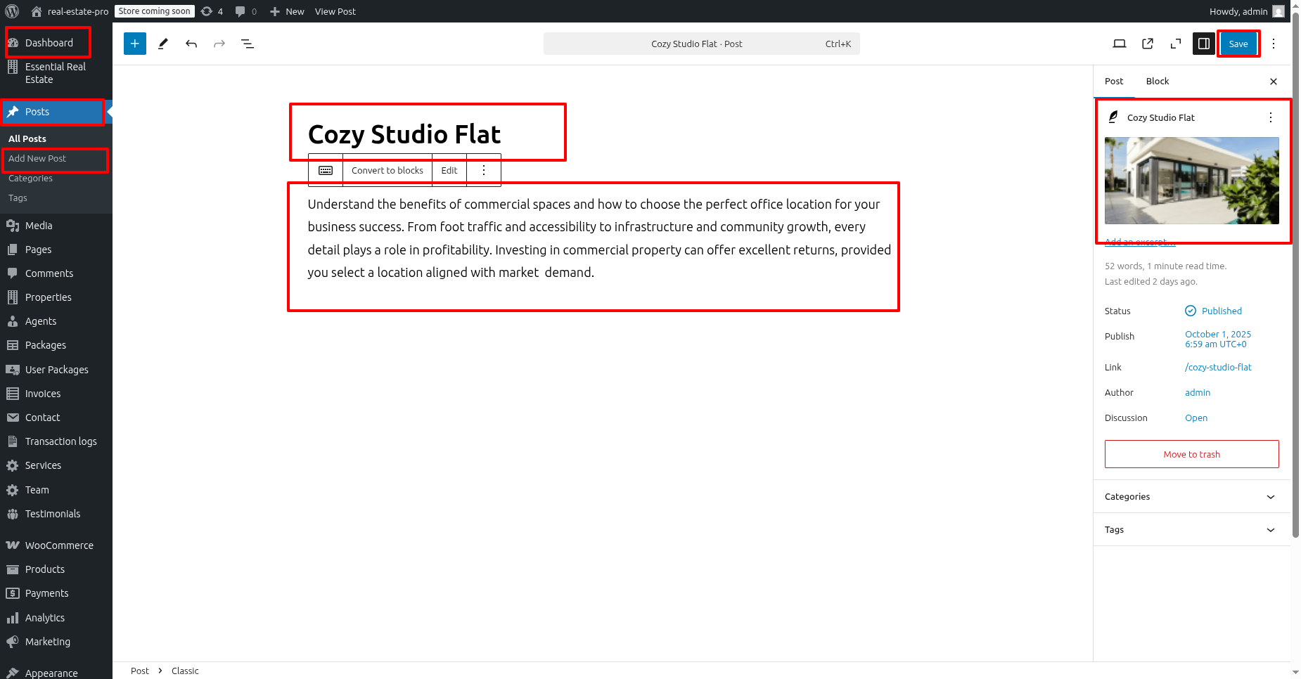 - Proceed to the Dashboard > Posts on the left sidebar and click on Add New.