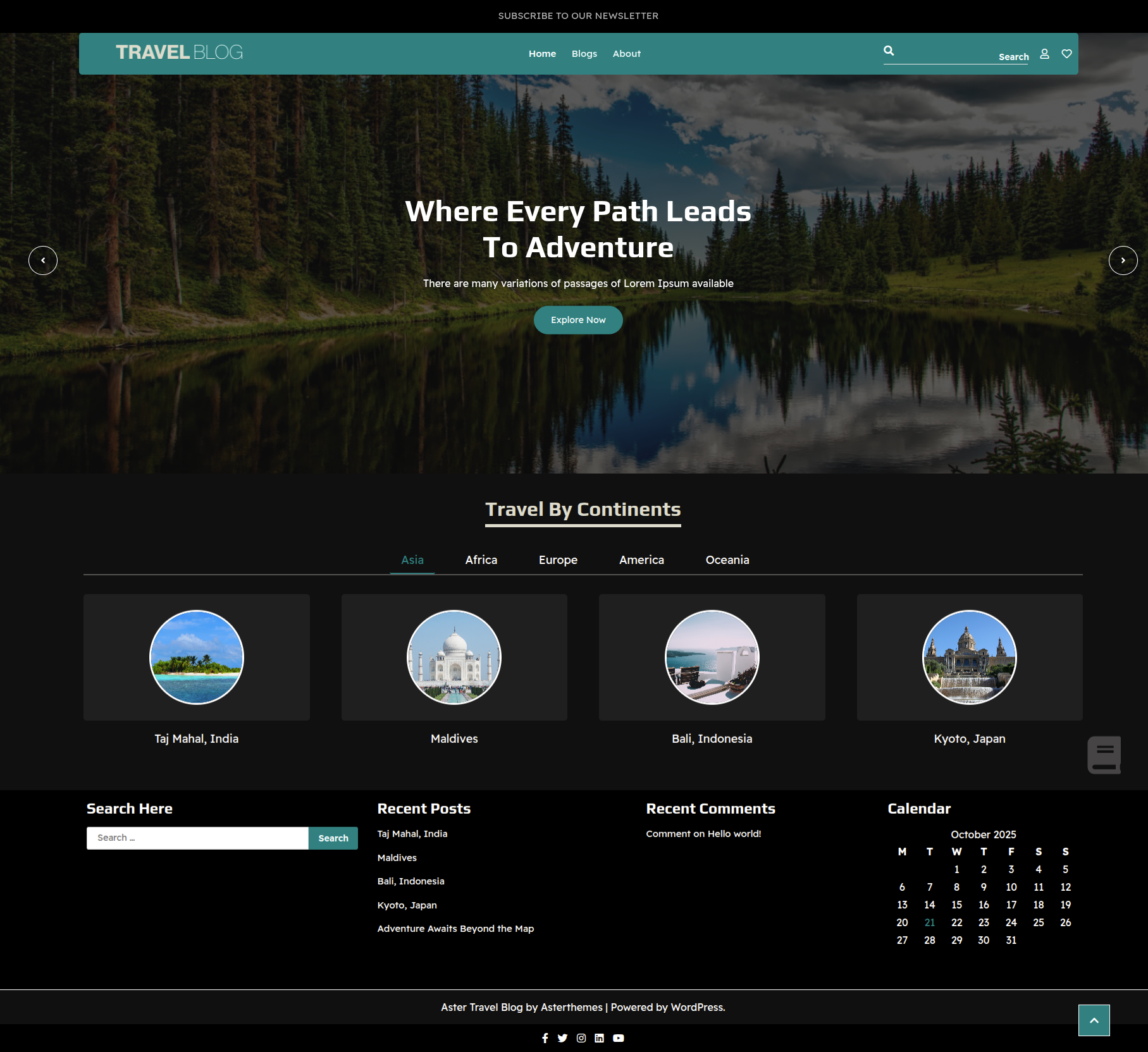 - Hit up the the Dashboard > Appearance > Customize > Front Page Options > Travel Section.