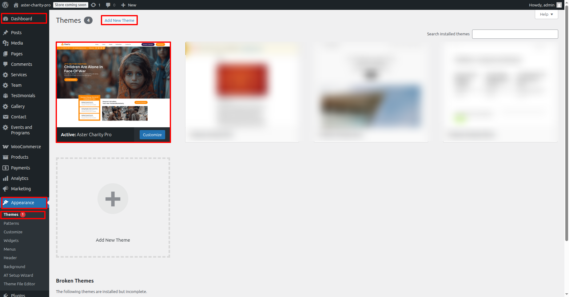 - Proceed to the Dashboard > Appearance > Themes and activate the theme from the Dashboard.