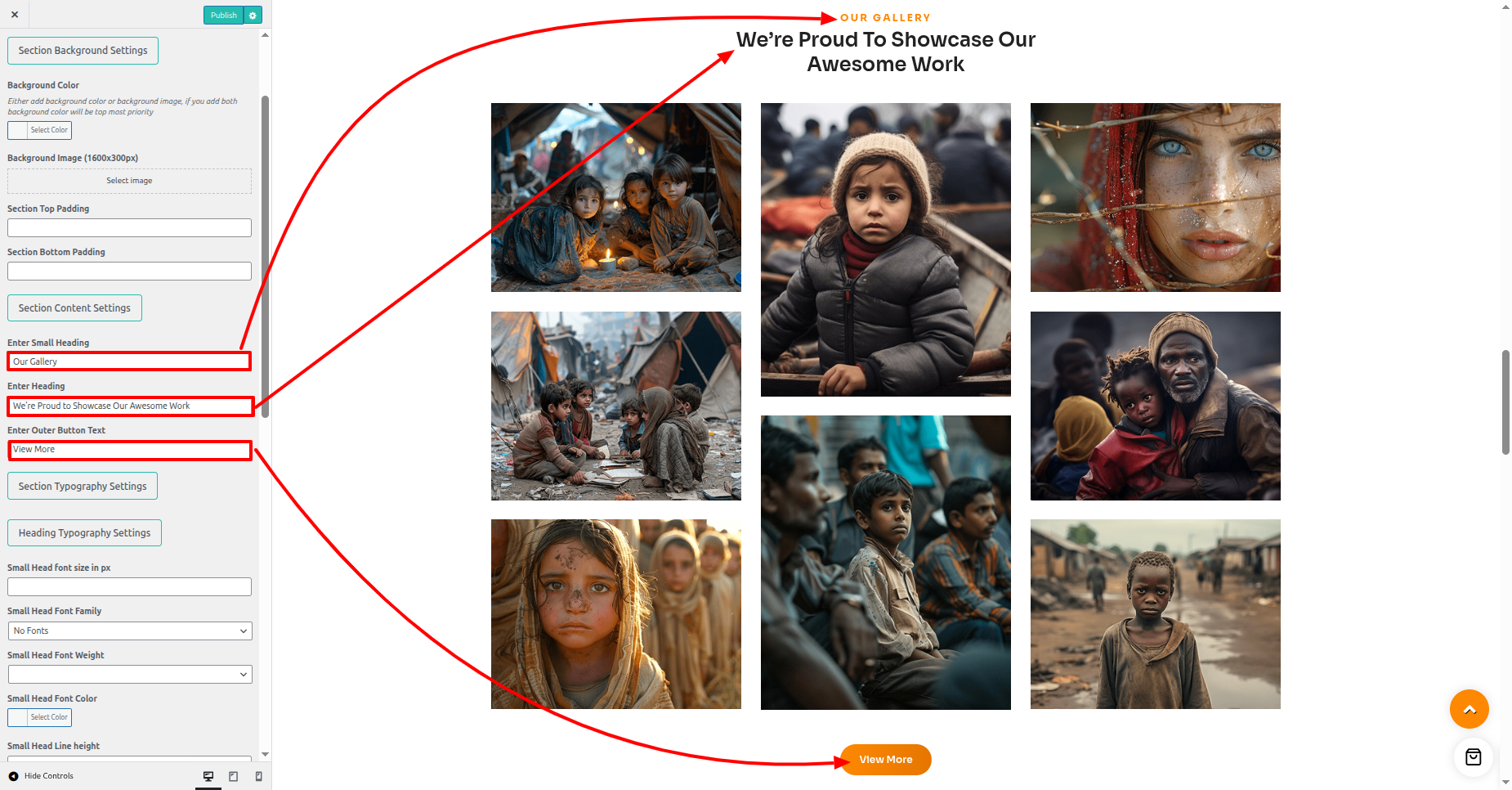- Proceed to the the Dashboard > Appearance > Customize > Theme Settings > Our Gallery Section.