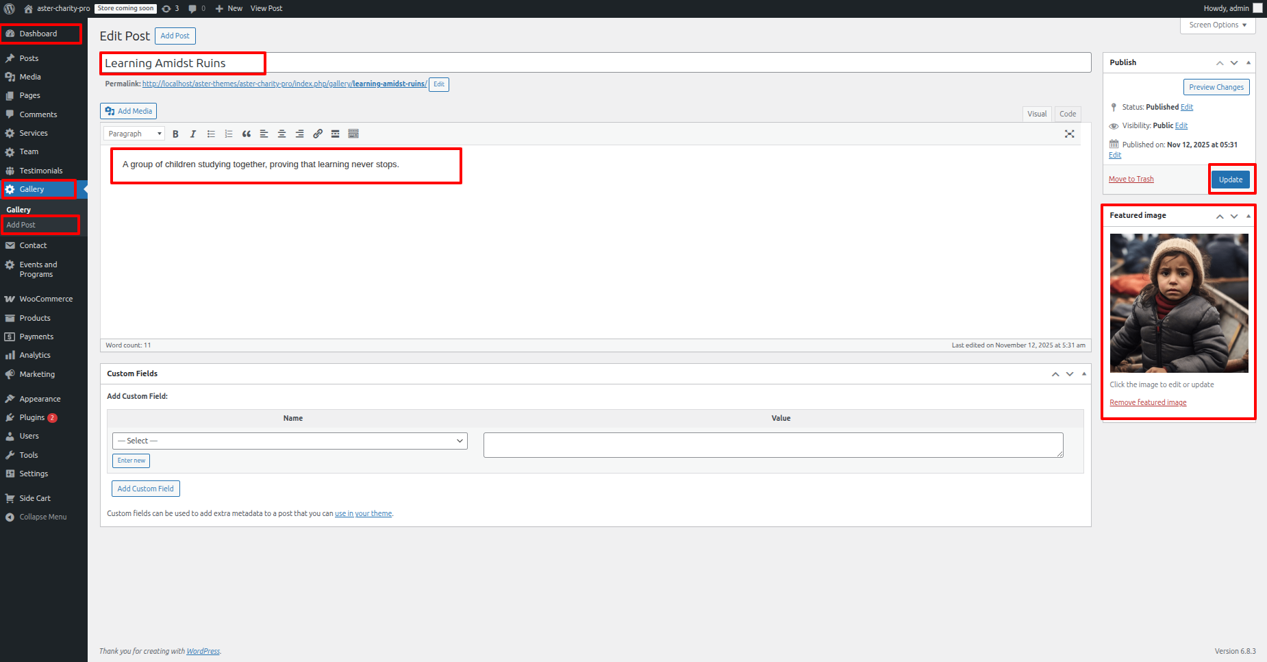 - Proceed to the Dashboard, then go to Our Gallery and click Add new post Fill in your details and click Publish button.