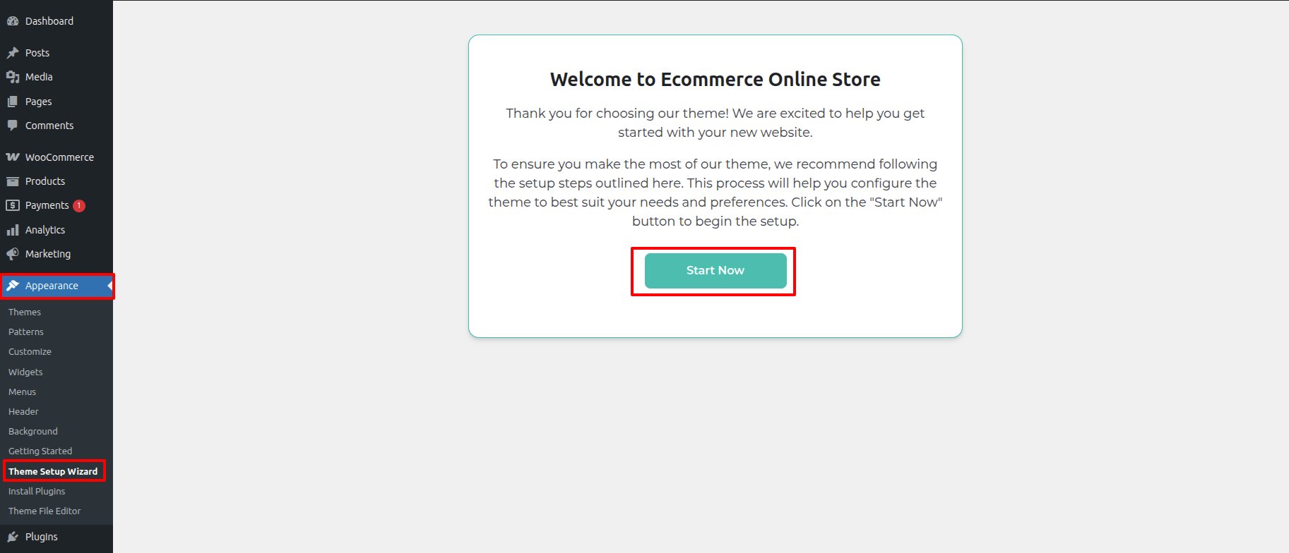 - Hit up the the Dashboard > Appearance > Theme Setup Wizard