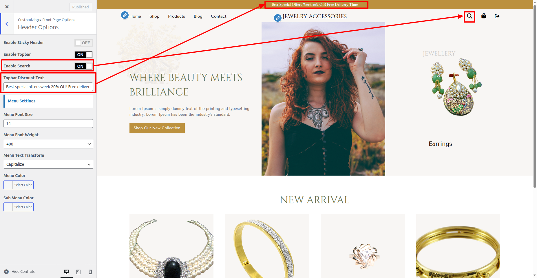 - Hit up the the Dashboard > Appearance > Customize > Front Page Options > Header Options