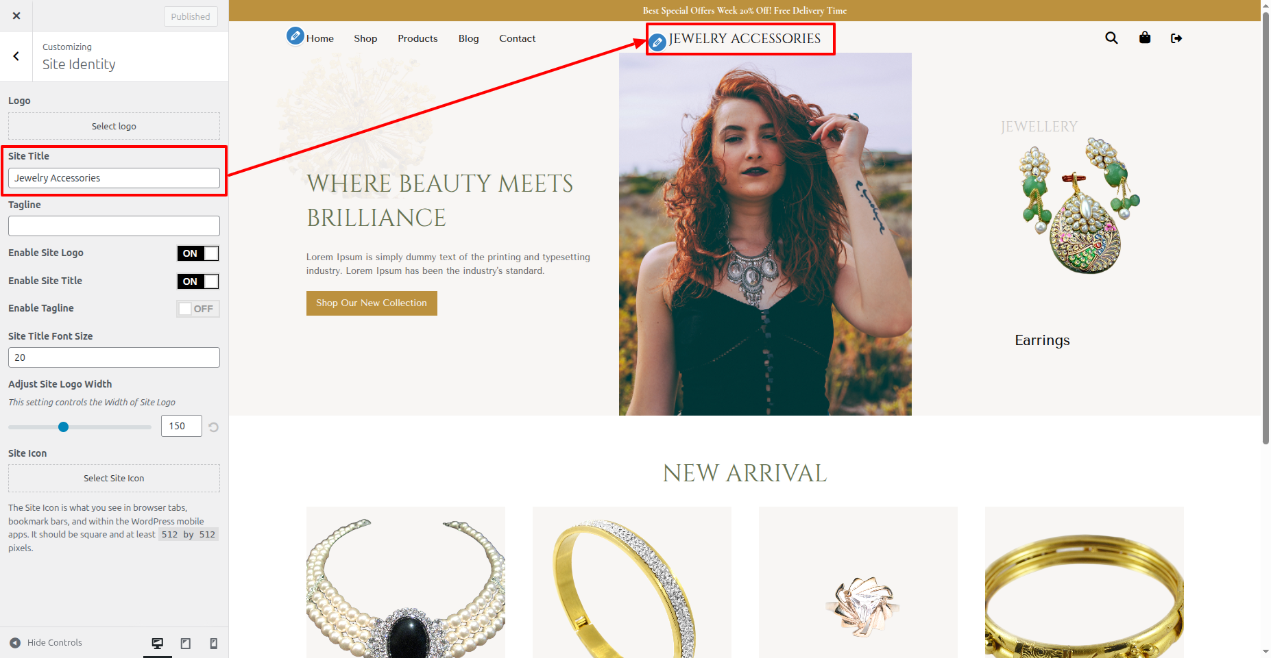- Hit up the the Dashboard > Appearance > Customize > > Site Identity.