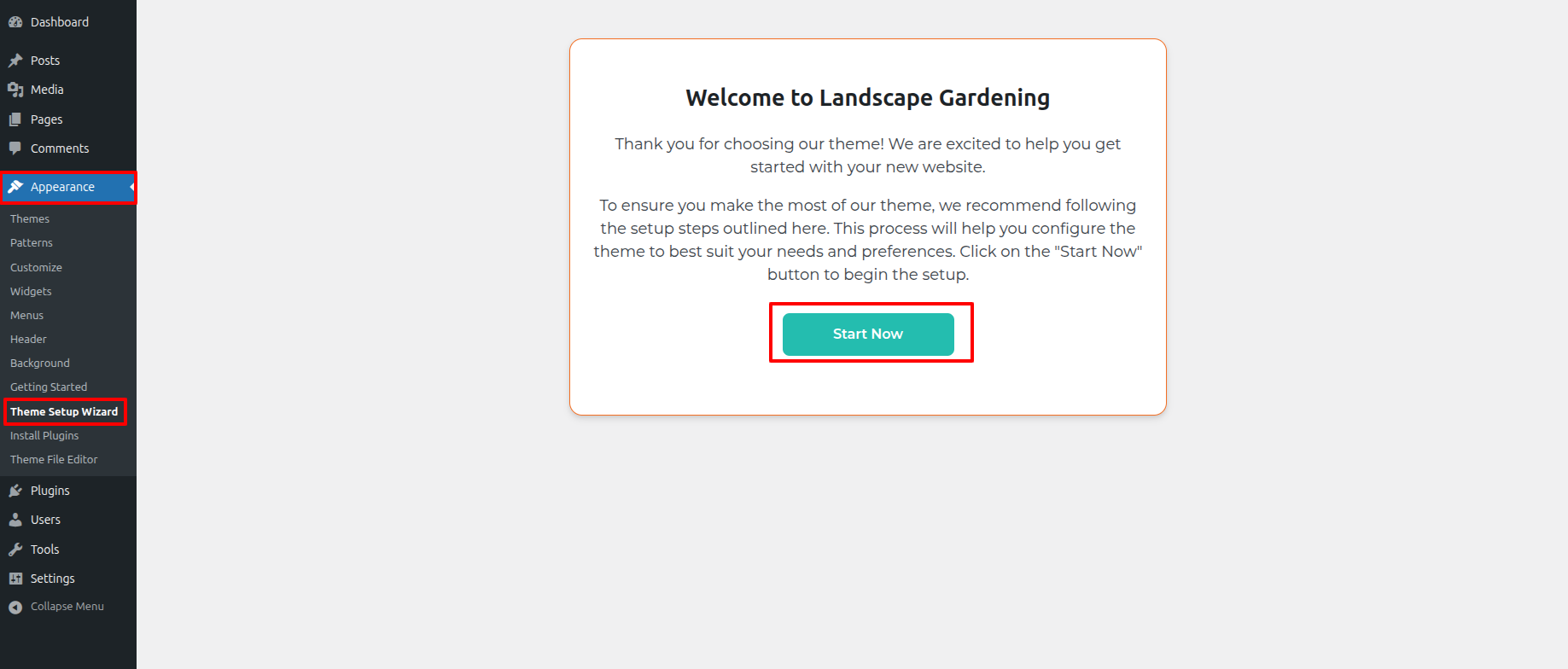 - Hit up the the Dashboard > Appearance > Theme Setup Wizard