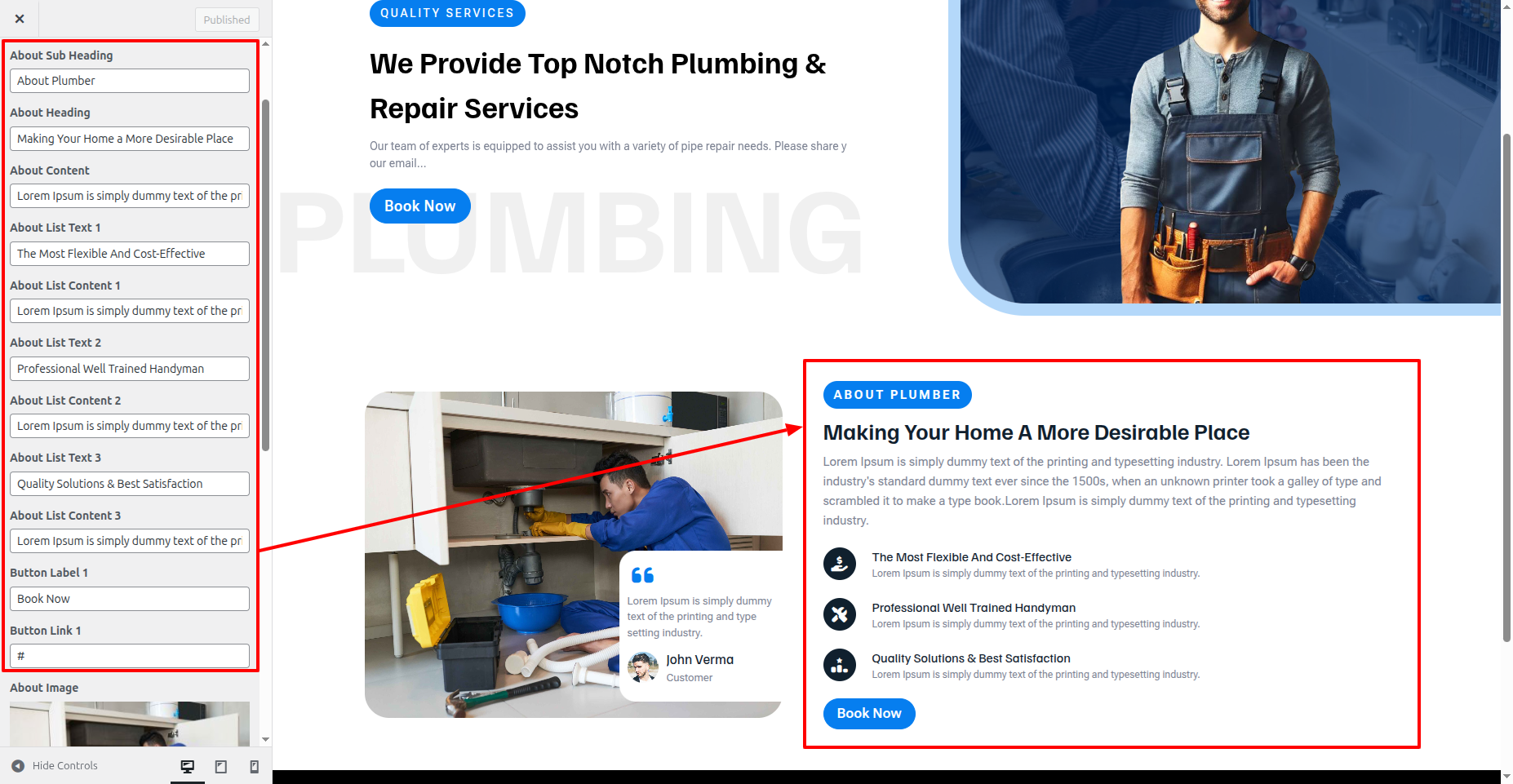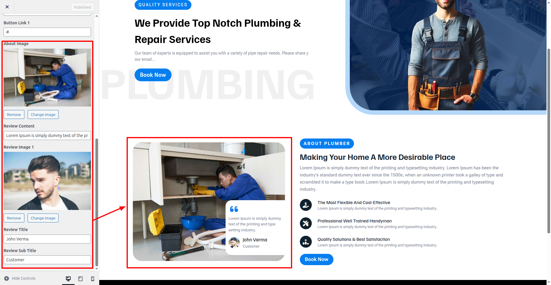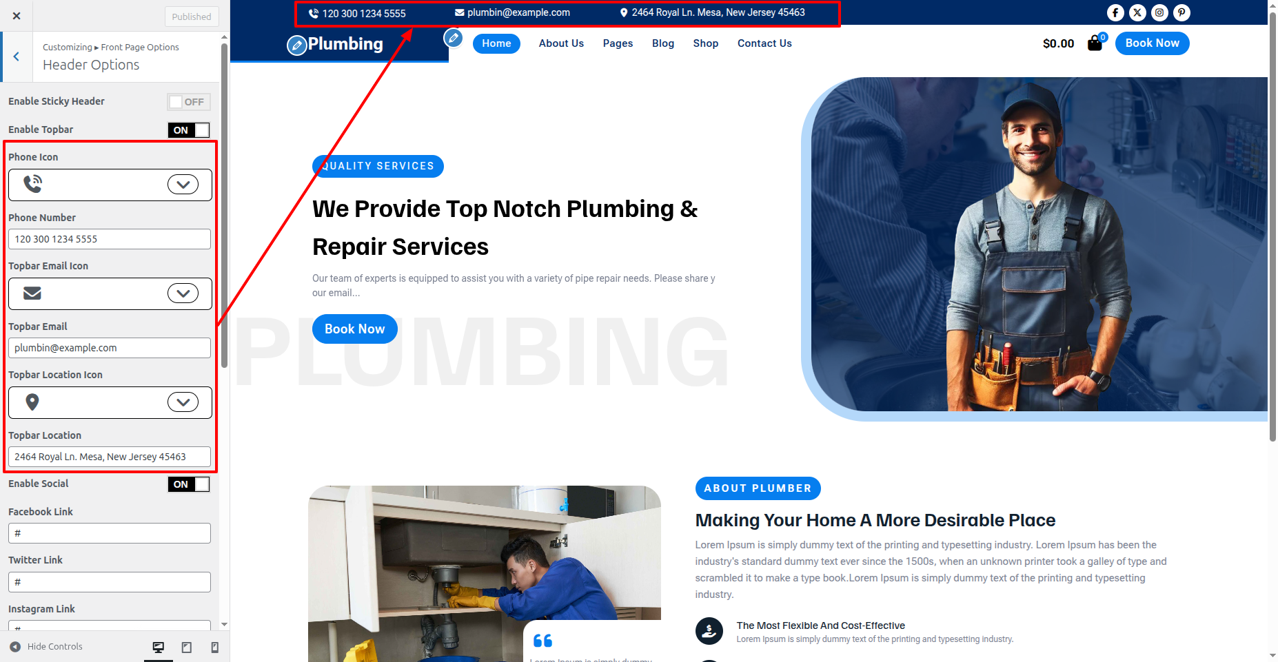 - Hit up the the Dashboard > Appearance > Customize > Front Page Options > About Section.