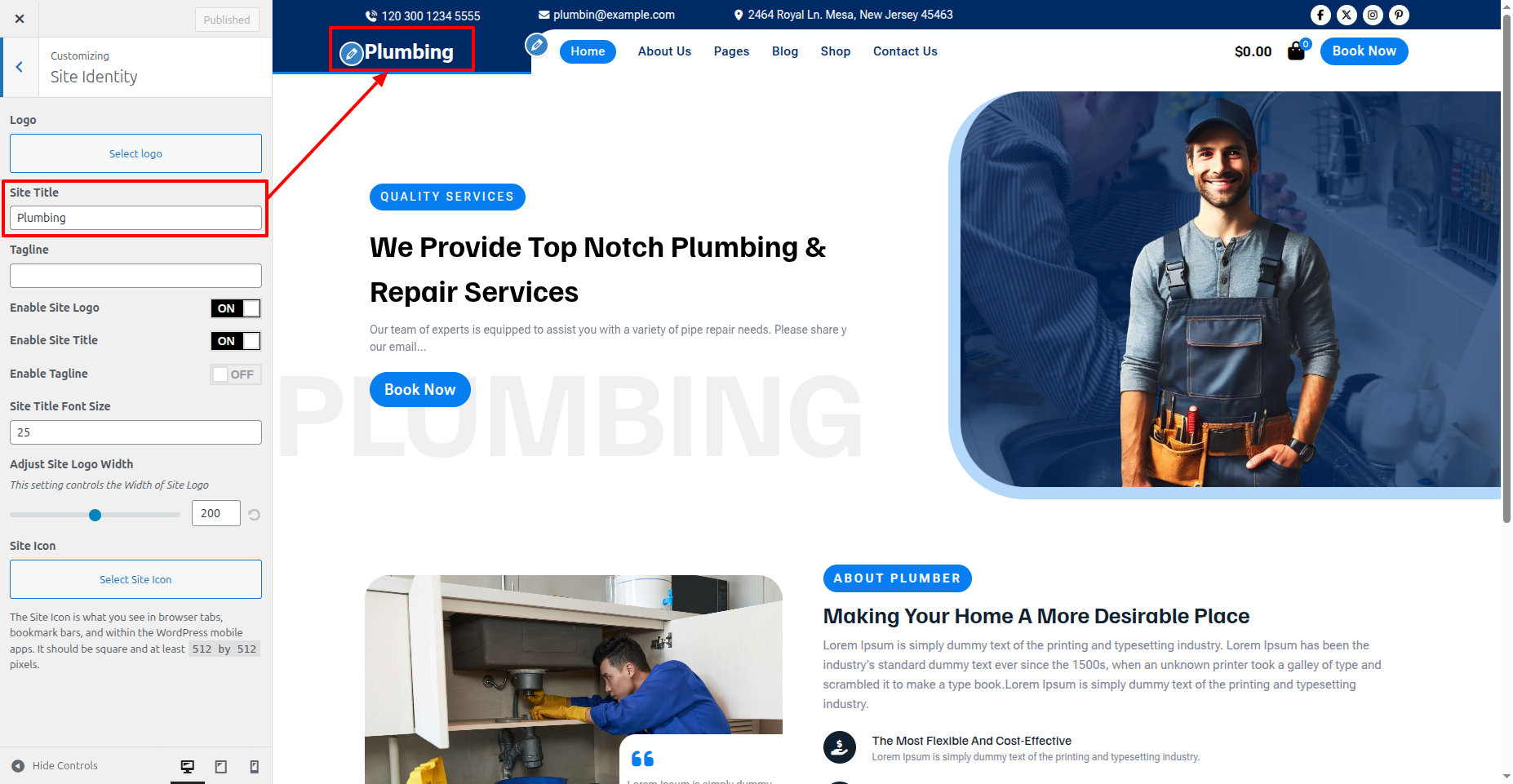 - Hit up the the Dashboard > Appearance > Customize > > Site Identity.