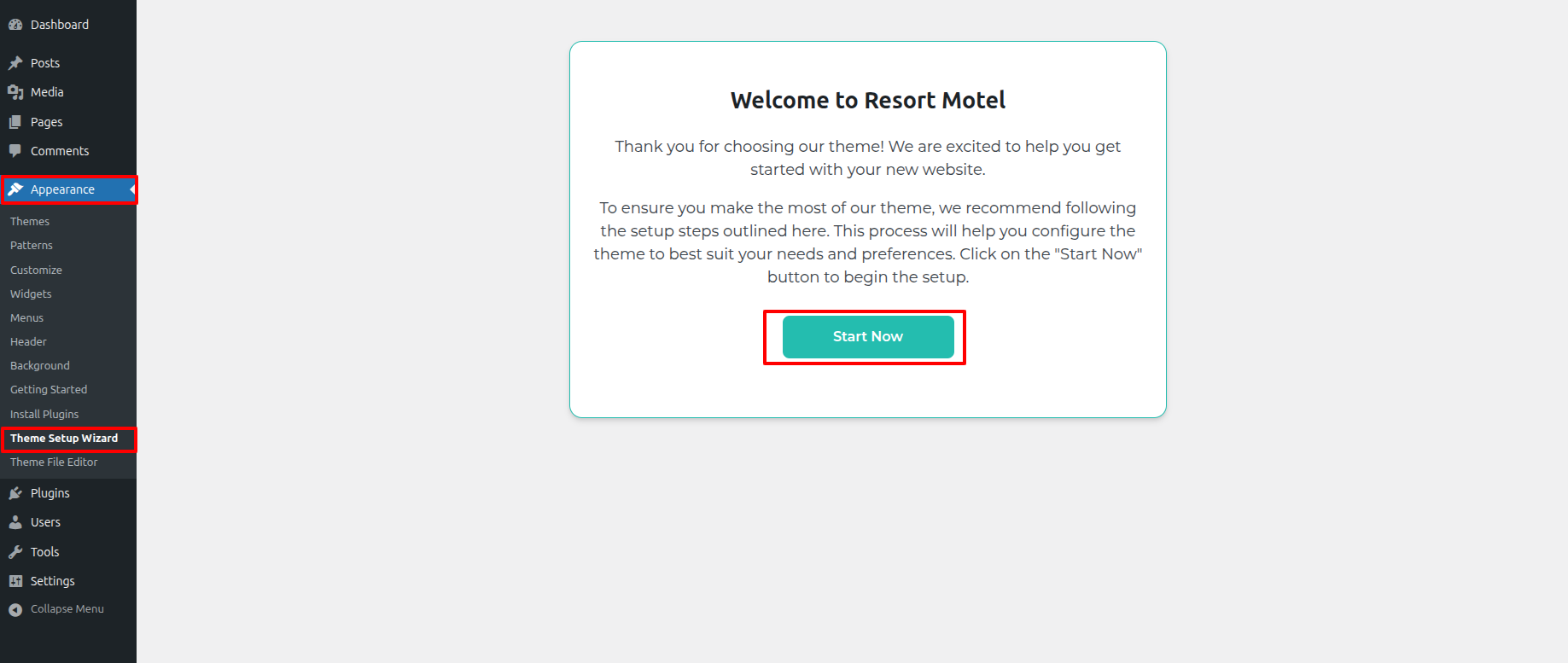 - Hit up the the Dashboard > Appearance > Theme Setup Wizard