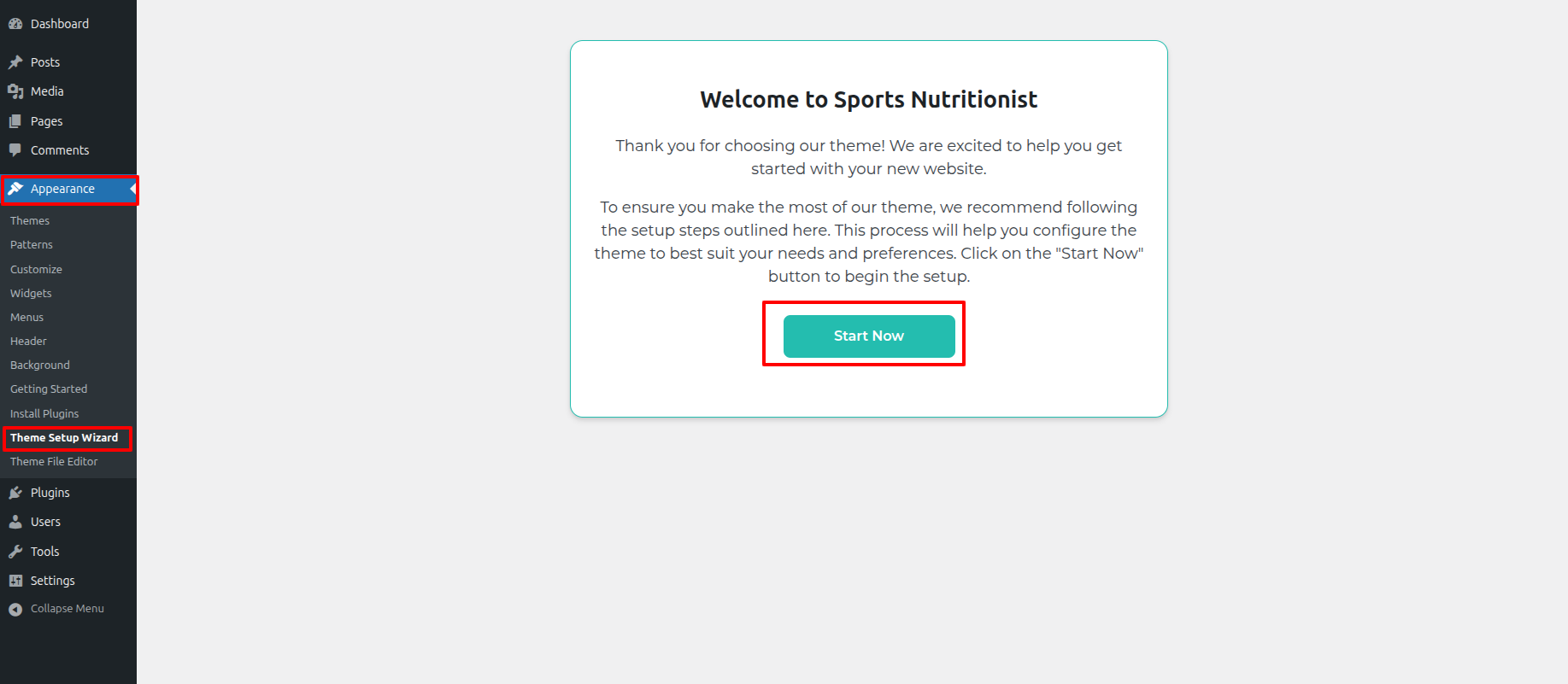 - Hit up the the Dashboard > Appearance > Theme Setup Wizard